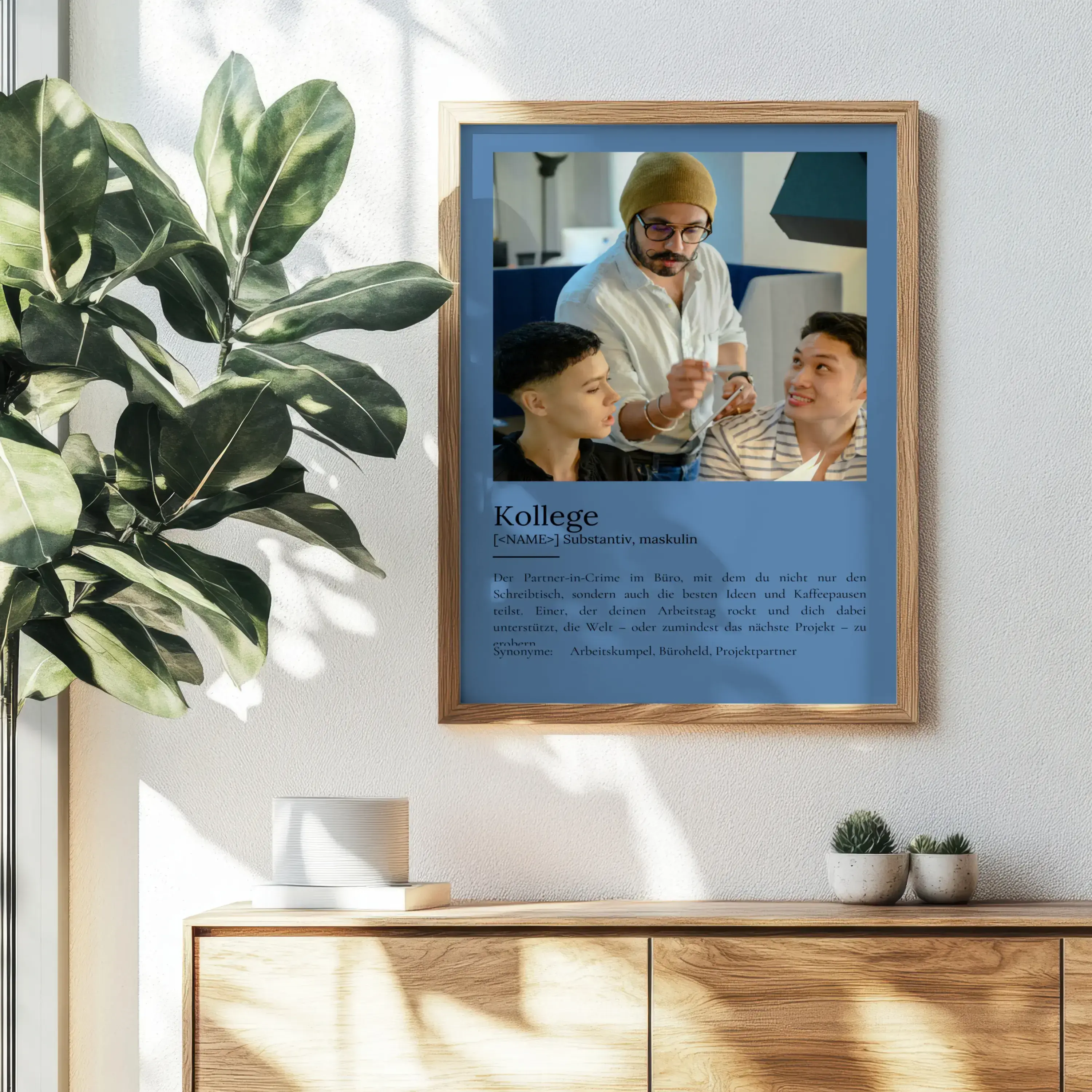 "Kollege" Definition - Geschenk als Poster, Leinwand erstellen. Eigene Fotos und Text.