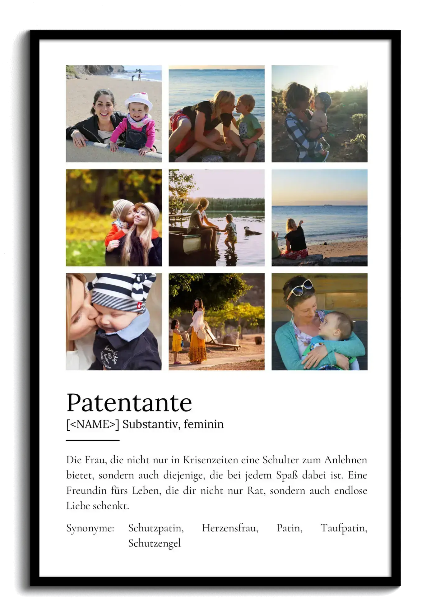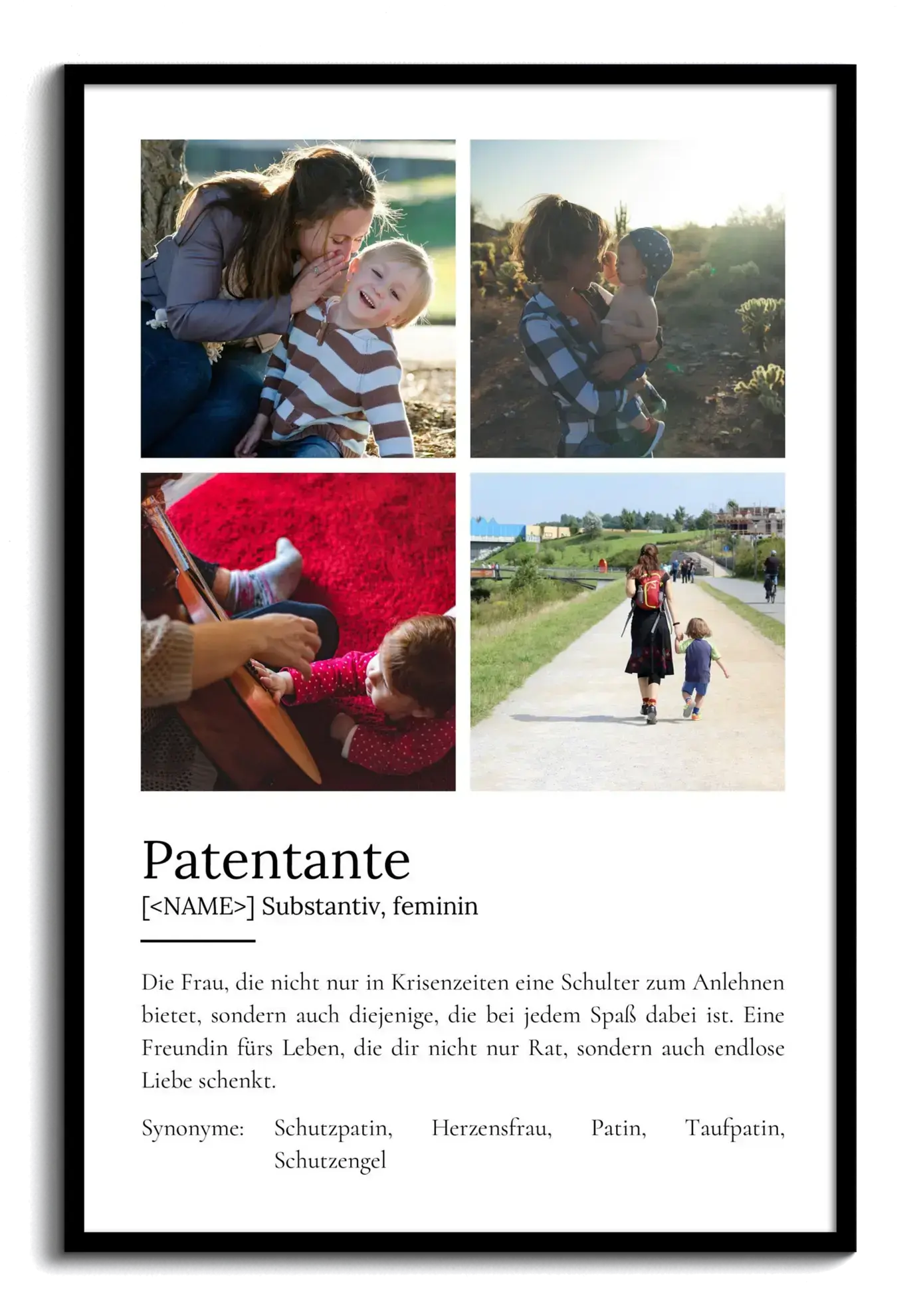 "Patentante" Definition - Geschenk als Poster, Leinwand erstellen. Eigene Fotos und Text.