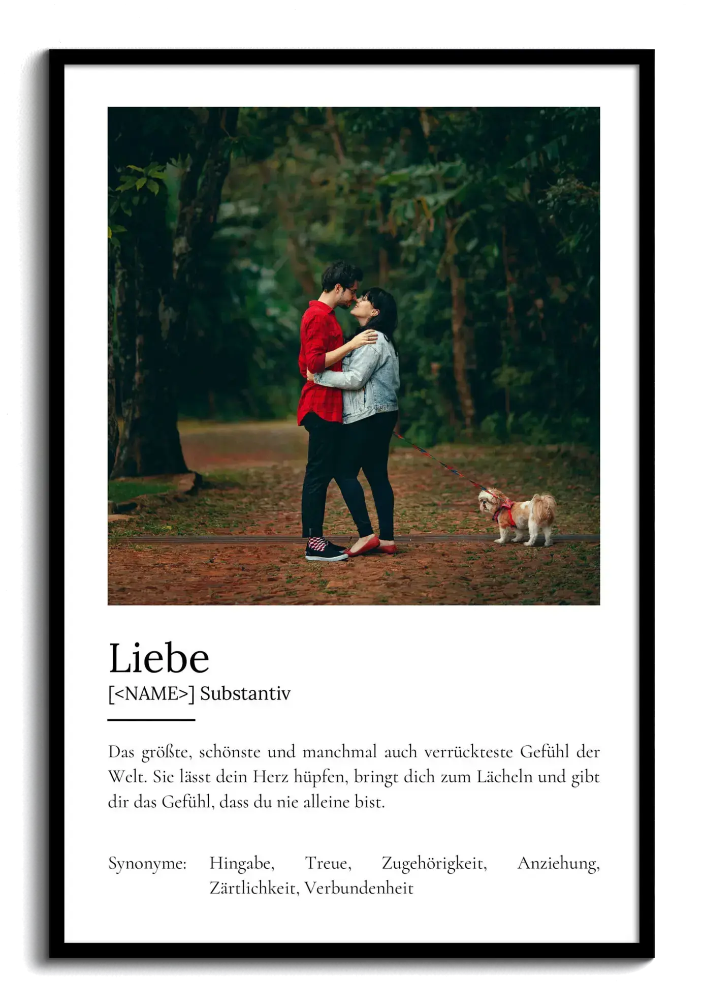 Ein personalisiertes Definitions-Poster im Duden-Stil: Liebe, das größte Gefühl der Welt, mit eigenem Foto.