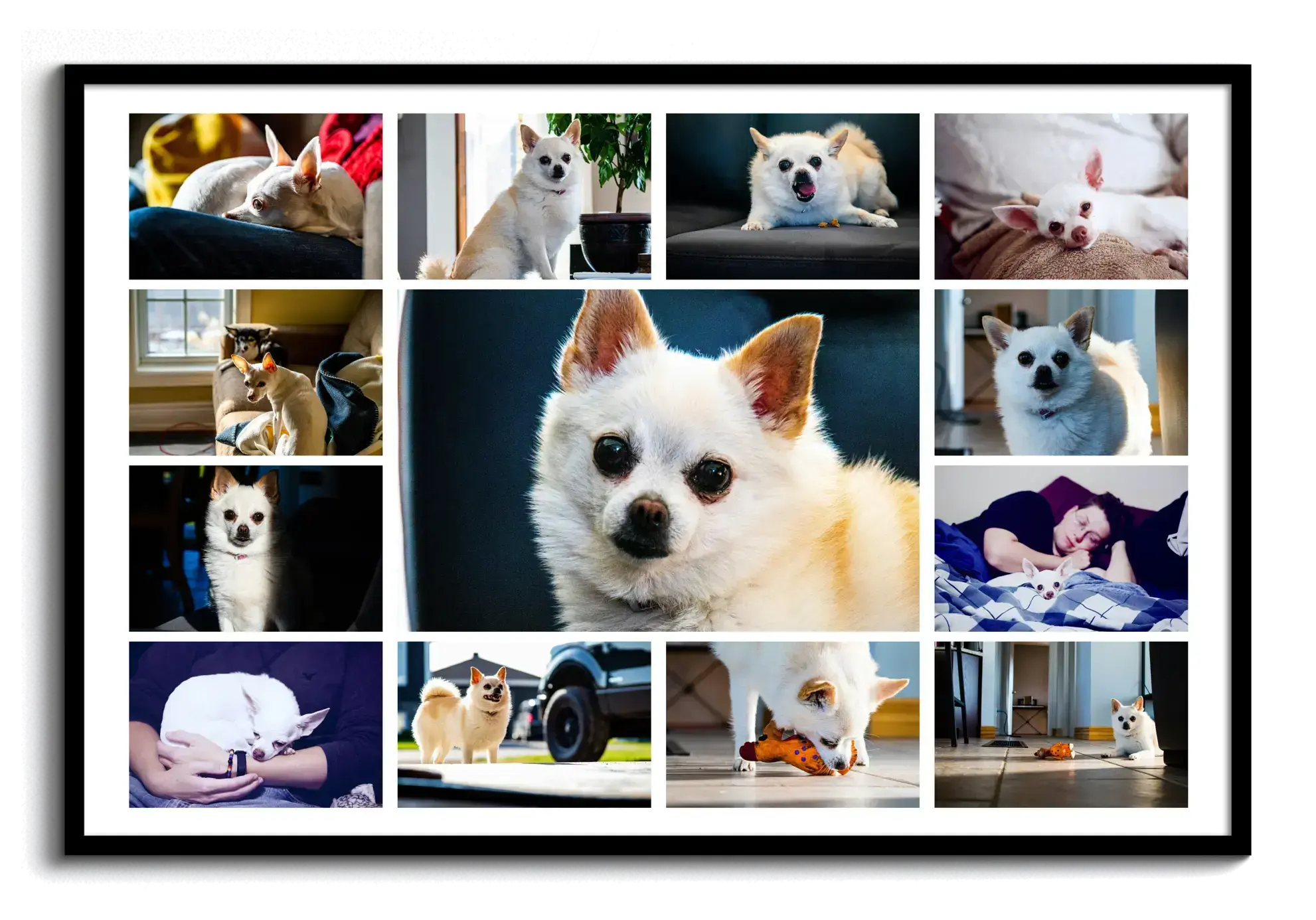 Erinnerungen an den Hund festhalten: Individuelle Fotocollagen mit zentralem Bild gestalten.