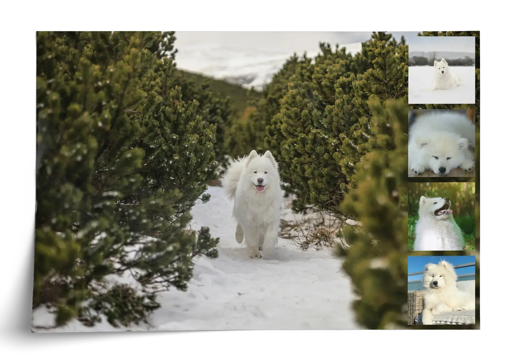 Fotocollage vom Hund als Polaroid, Raster oder mit Hintergrundbild – liebevoll personalisierbar.