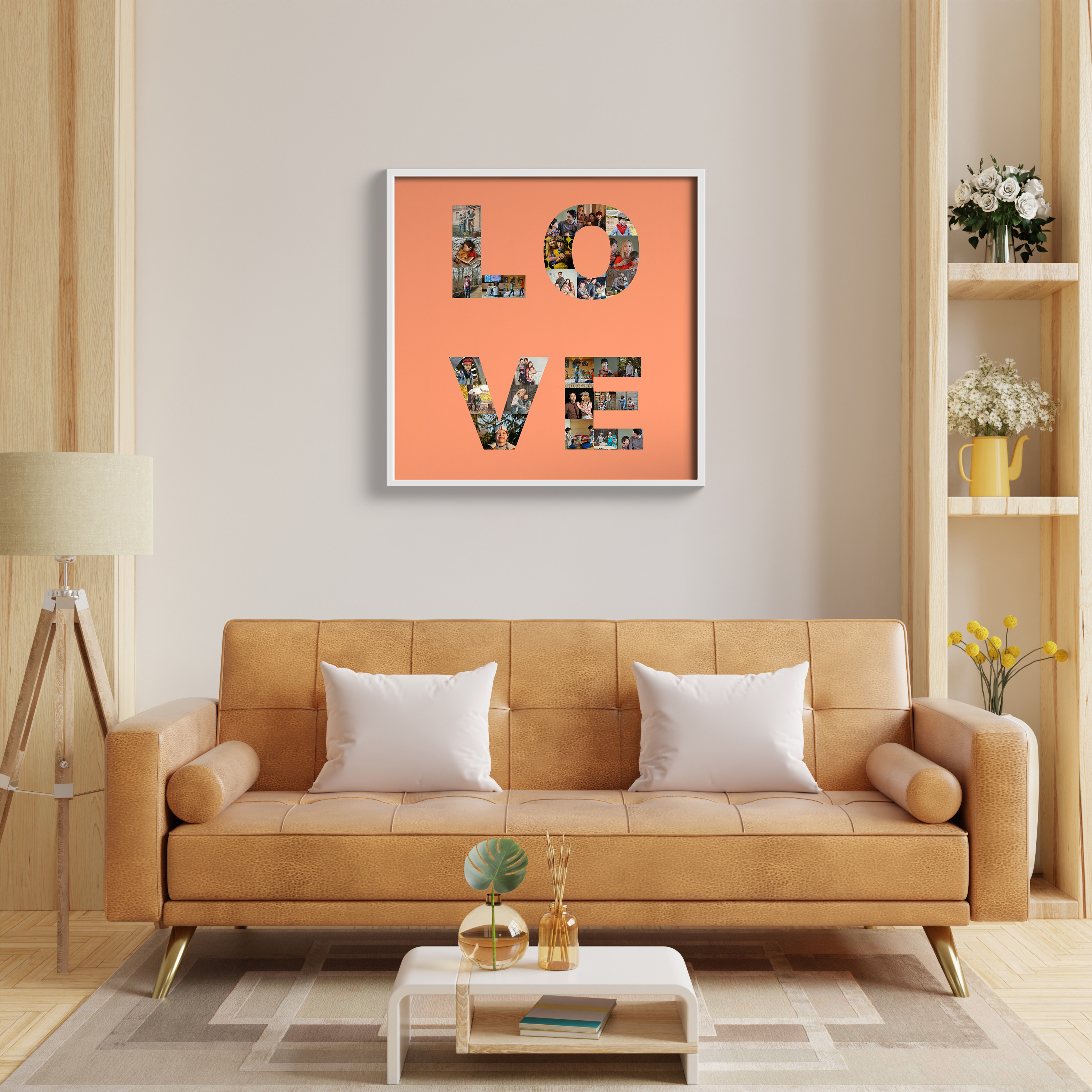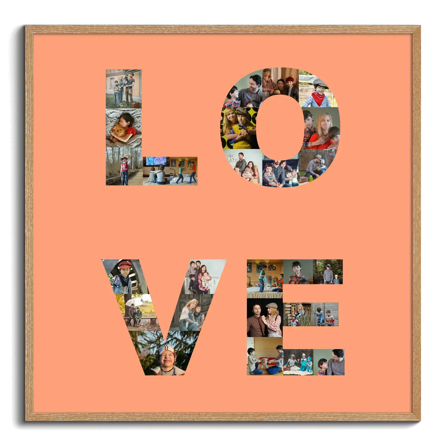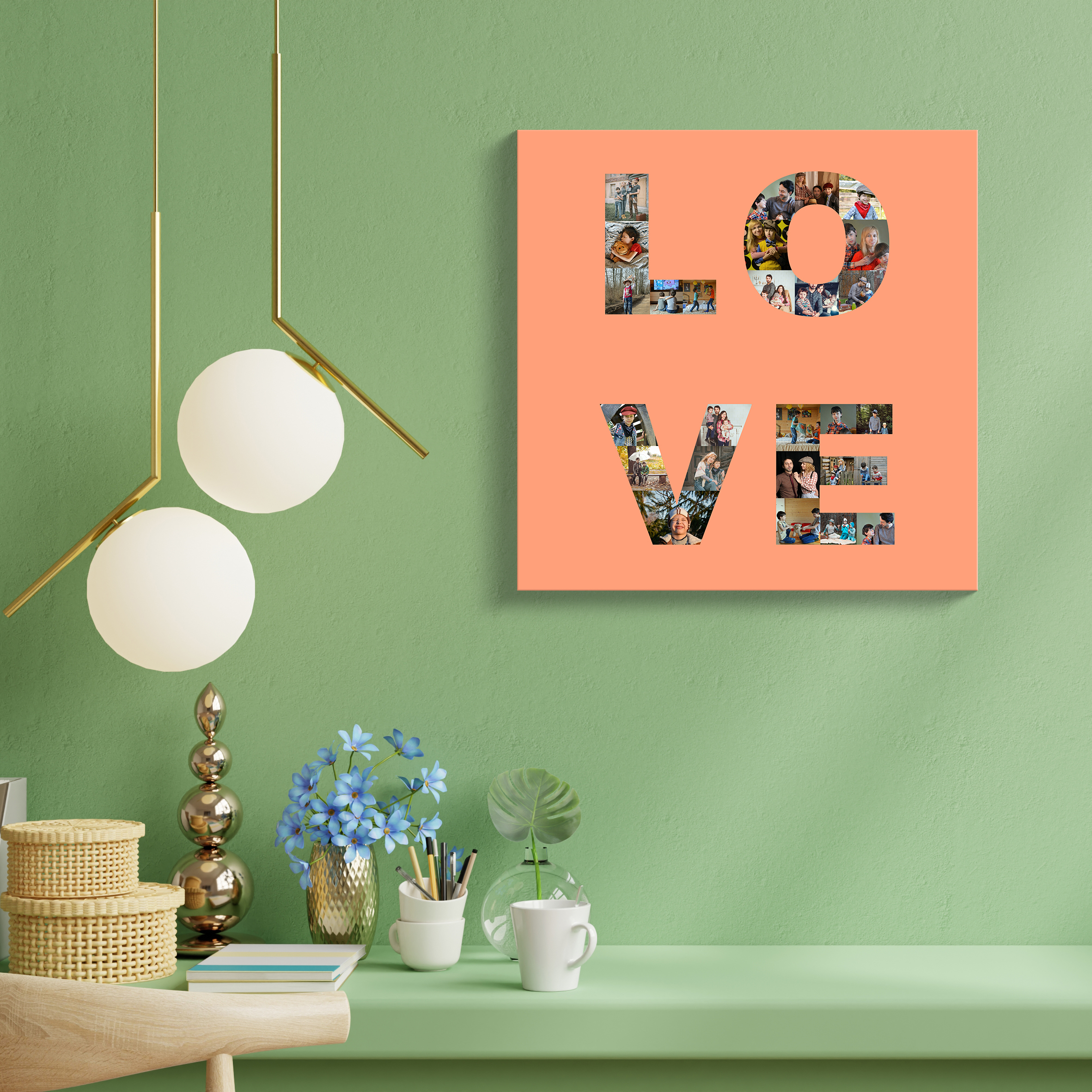 Individuelle Fotocollage "LOVE" aus Lieblingsfotos – Premiumdruck auf Leinwand in 40x40cm.