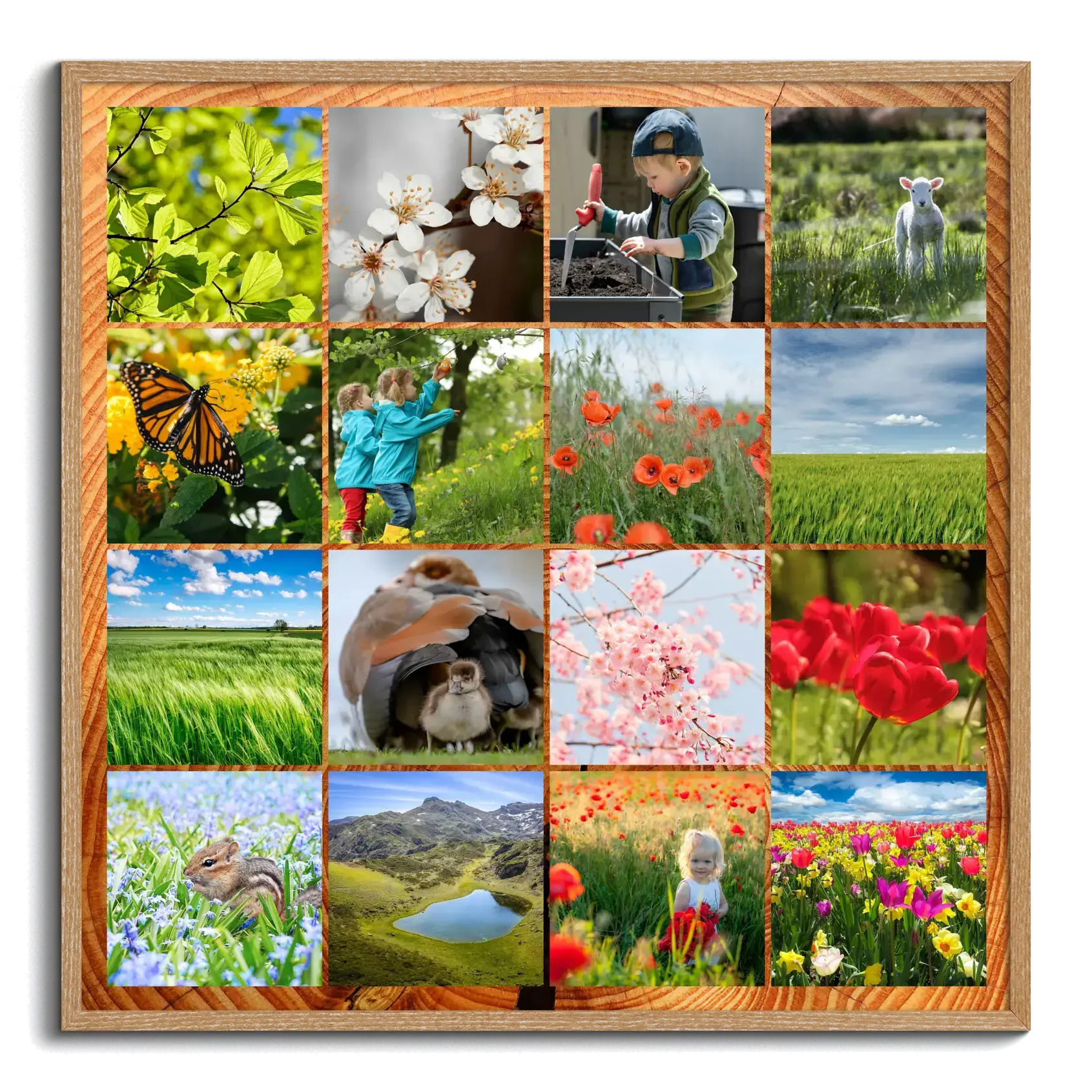 Frühlingsgefühle an der Wand: Blumen, Wiesen und Foto-Collagen mit individuellem Text.