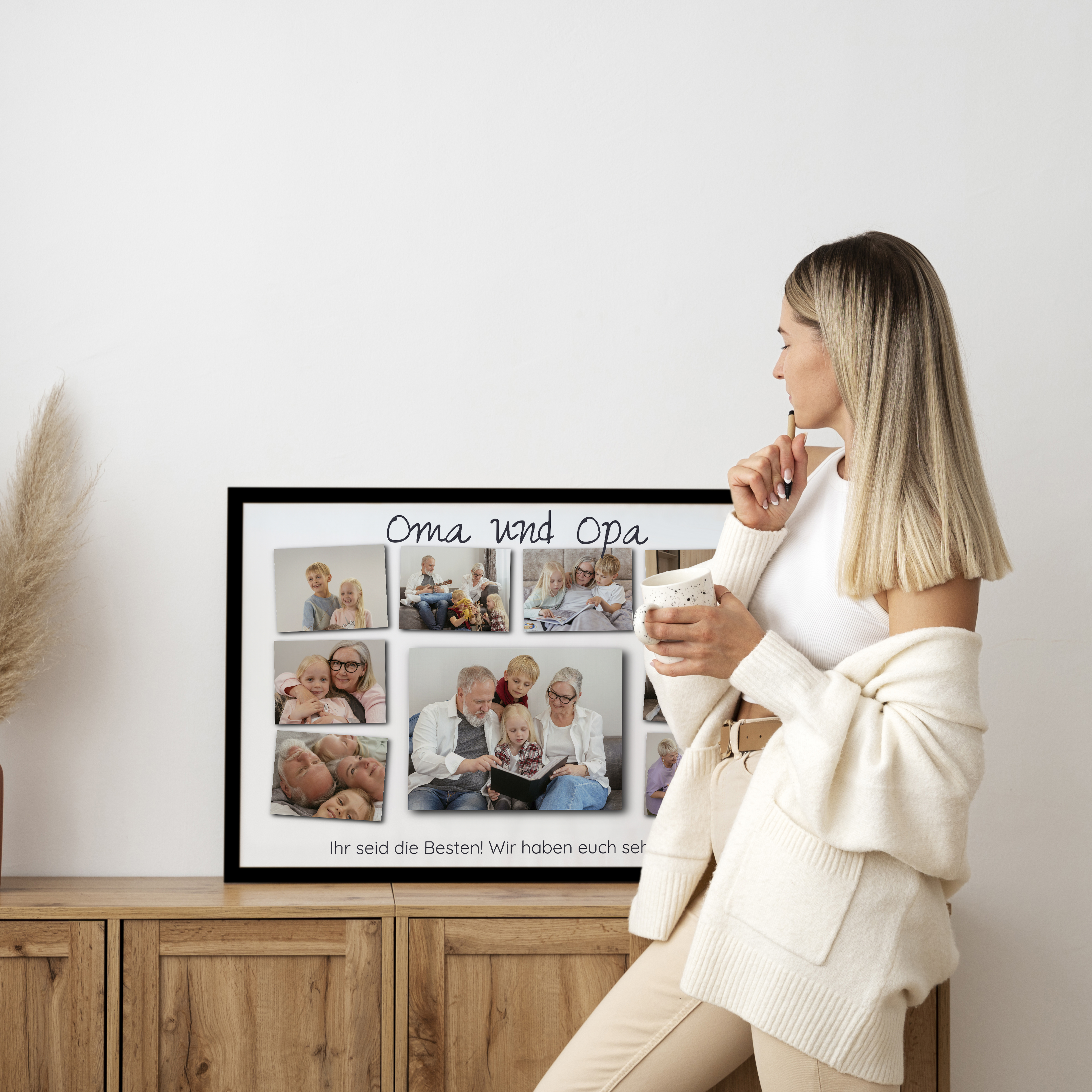 9-Foto-Collage für Oma & Opa: großes Mittelbild, Spruch, individuell anpassbar – Geschenkidee