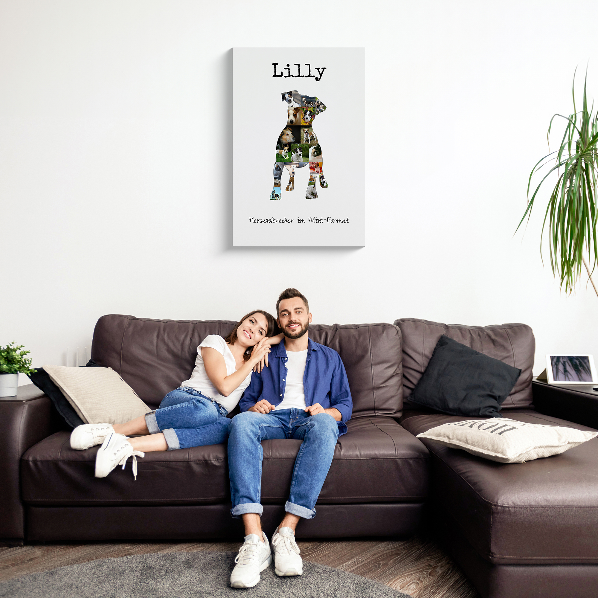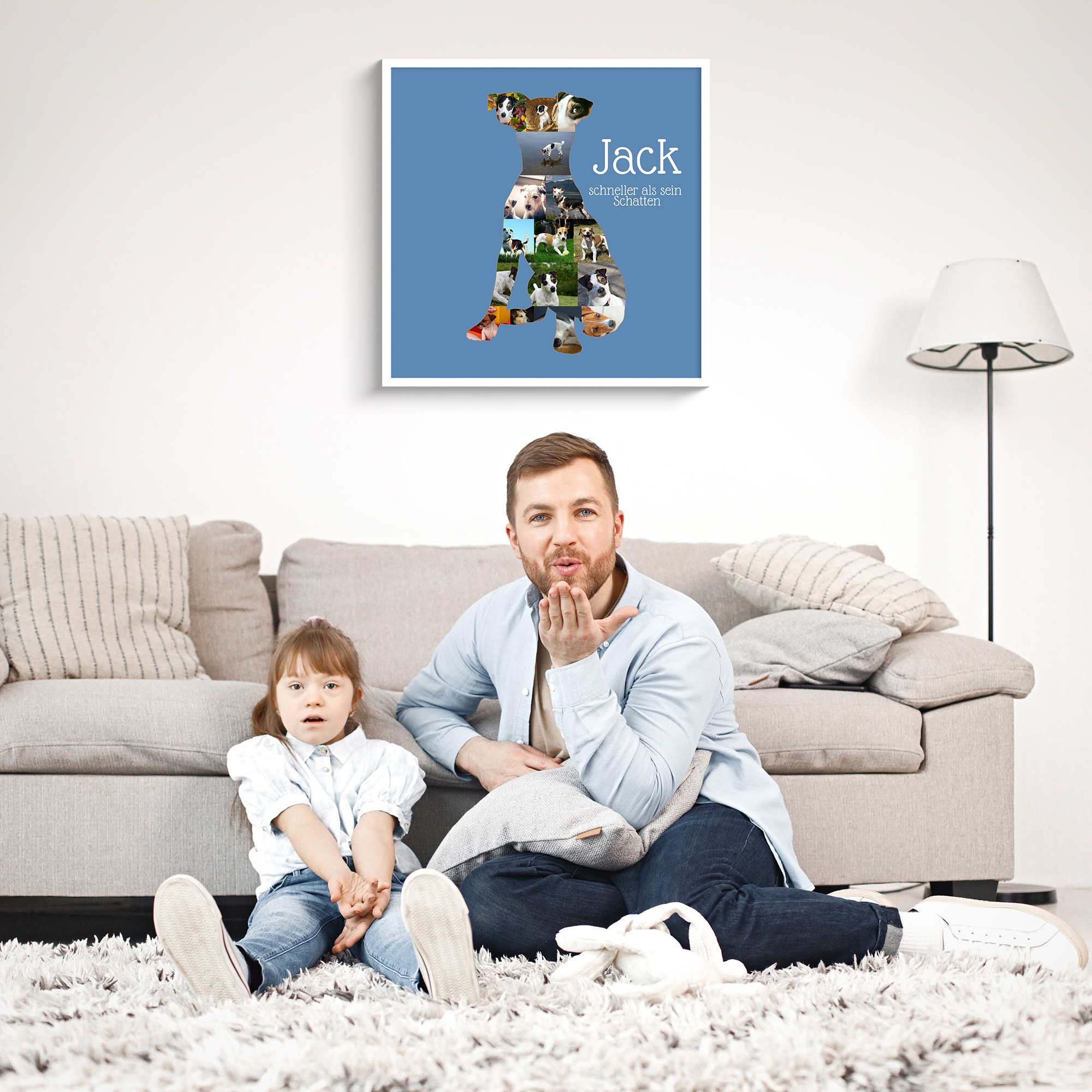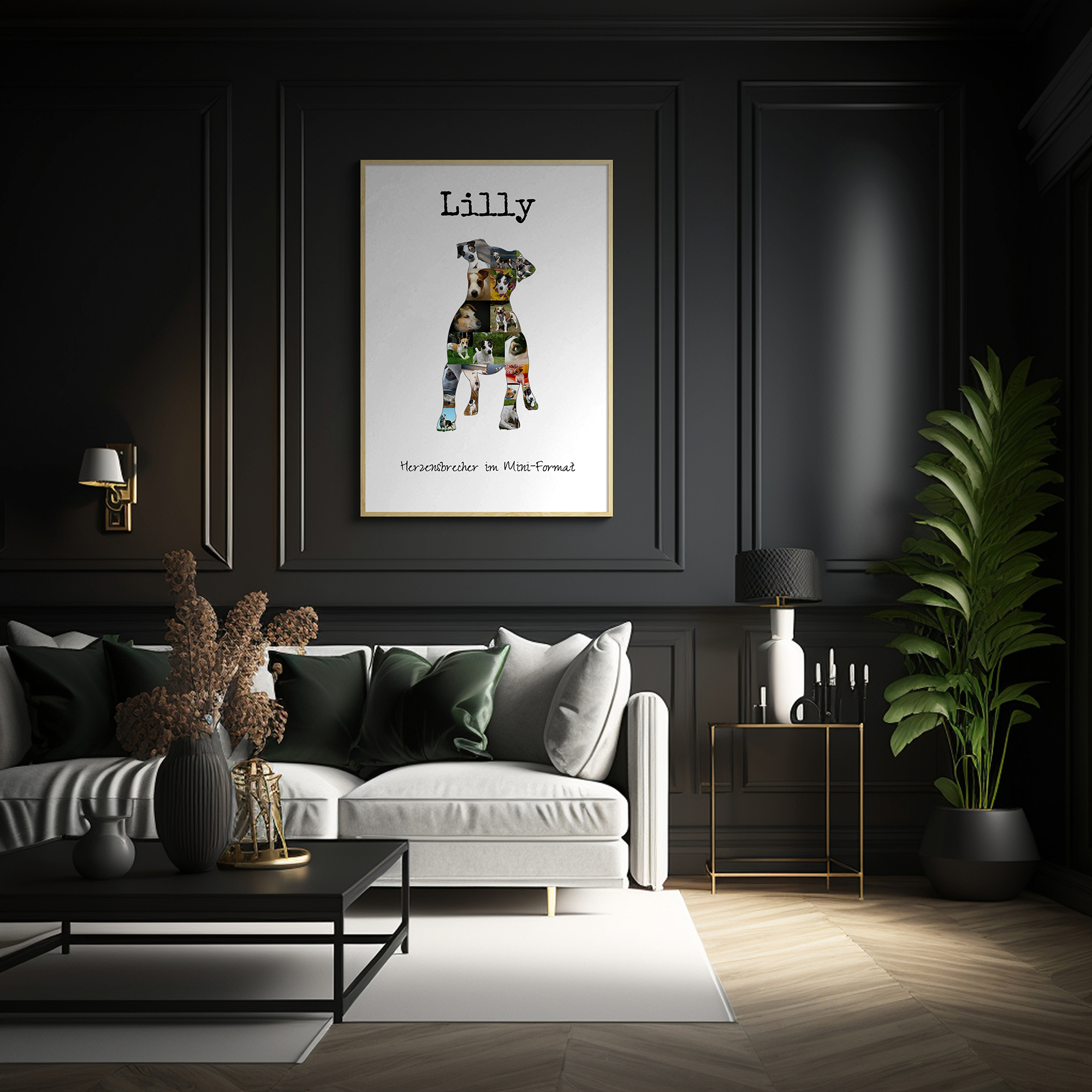 Mit nur wenigen Klicks eine einzigartige Hunde-Fotocollage erstellen. Lass deinen Jack Russell Terrier in dir bedeutenden Momenten erstrahlen, mit deinen liebsten Hundebildern in einer bezaubernden Silhouette dargestellt.