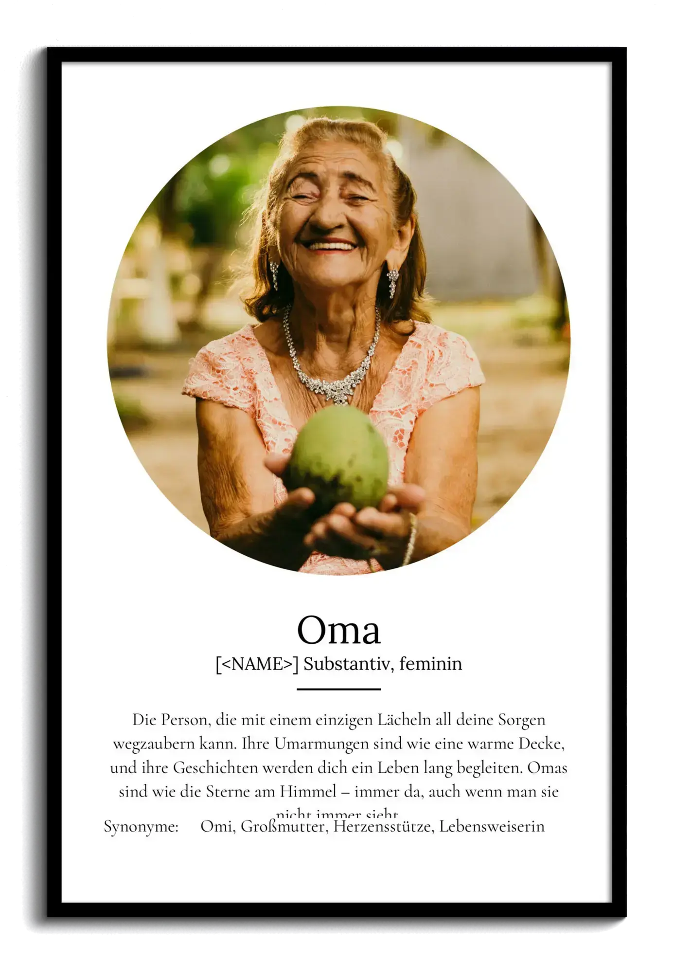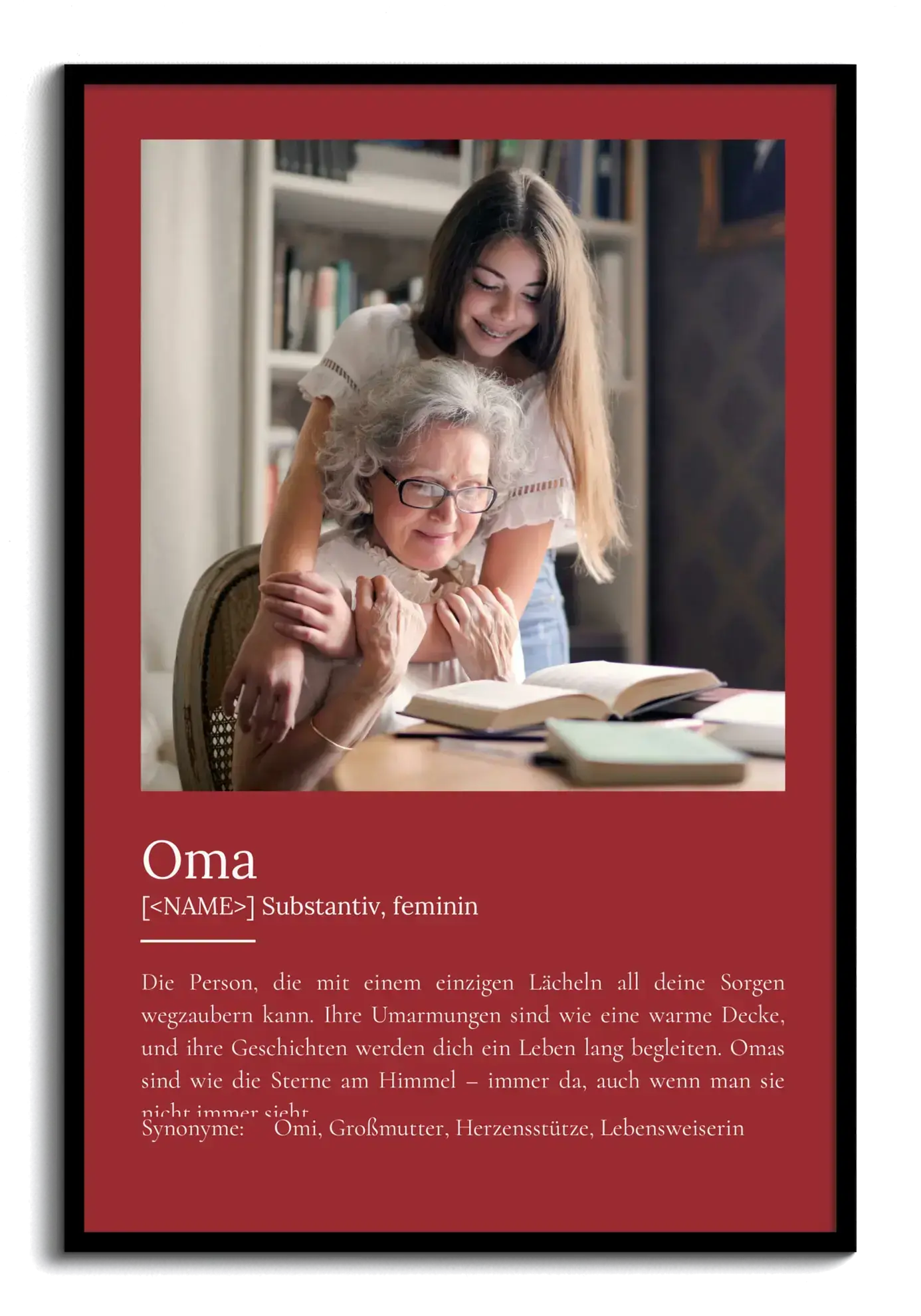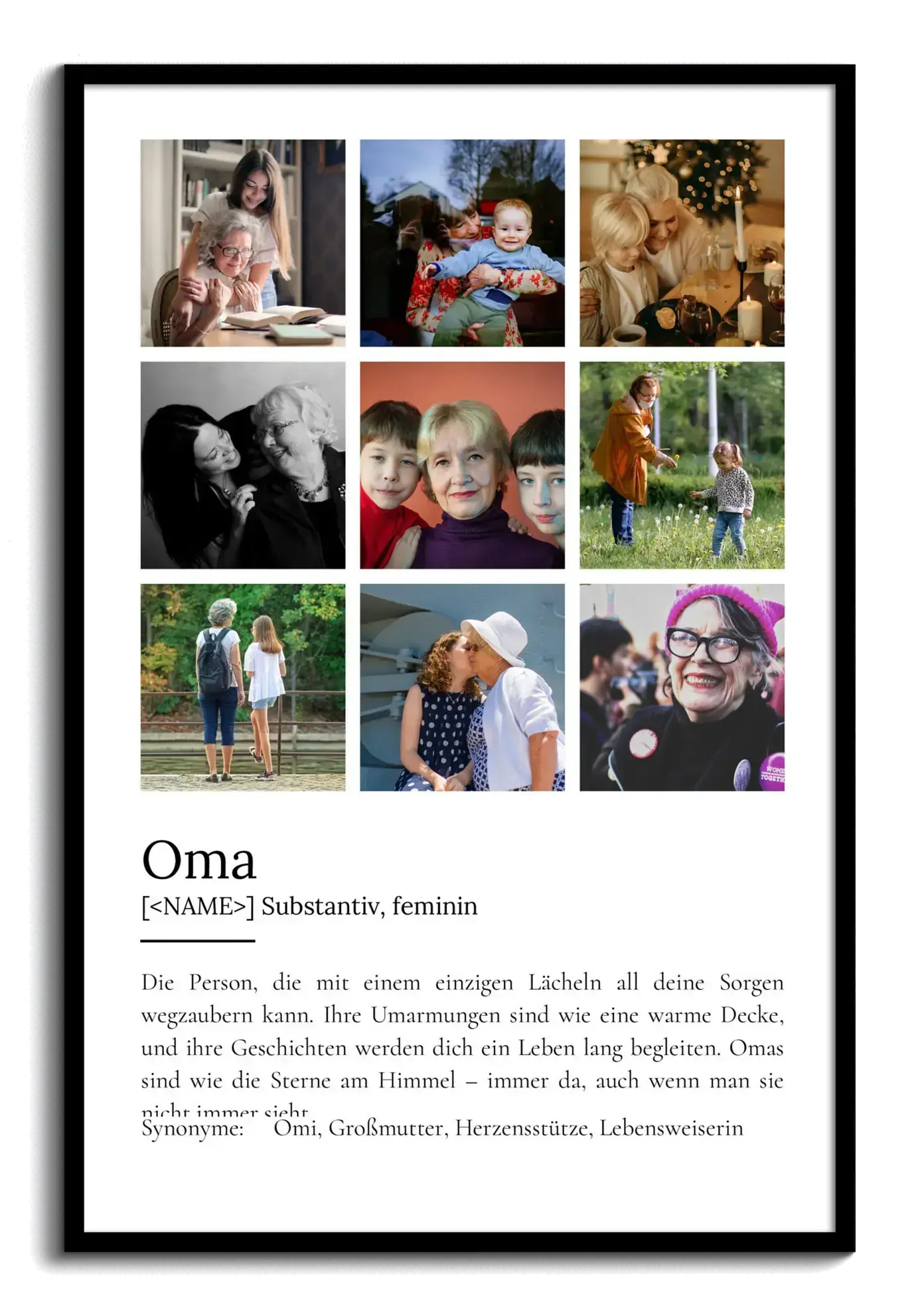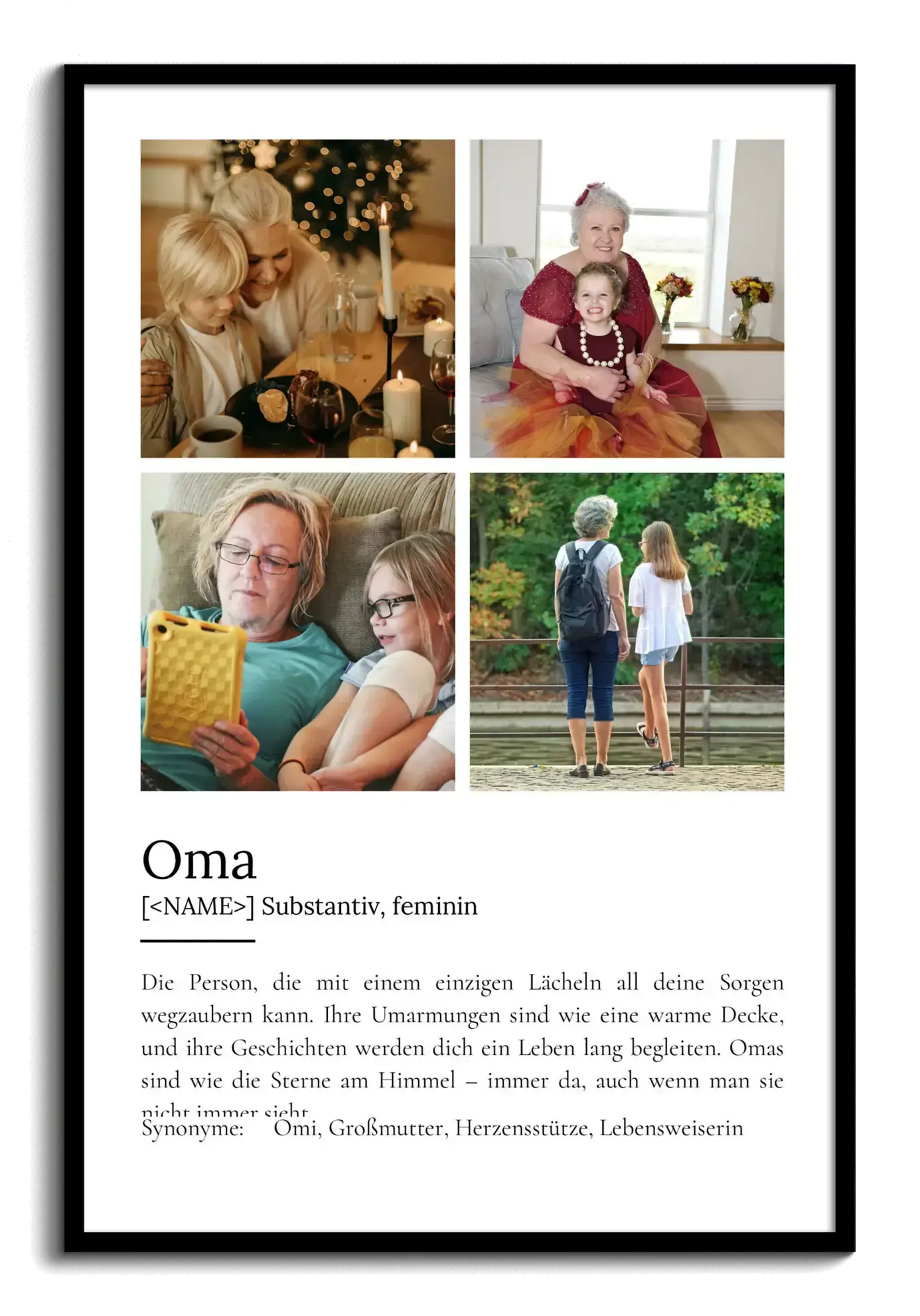 "Oma" Definition - Geschenk als Poster, Leinwand erstellen. Eigene Fotos und Text.