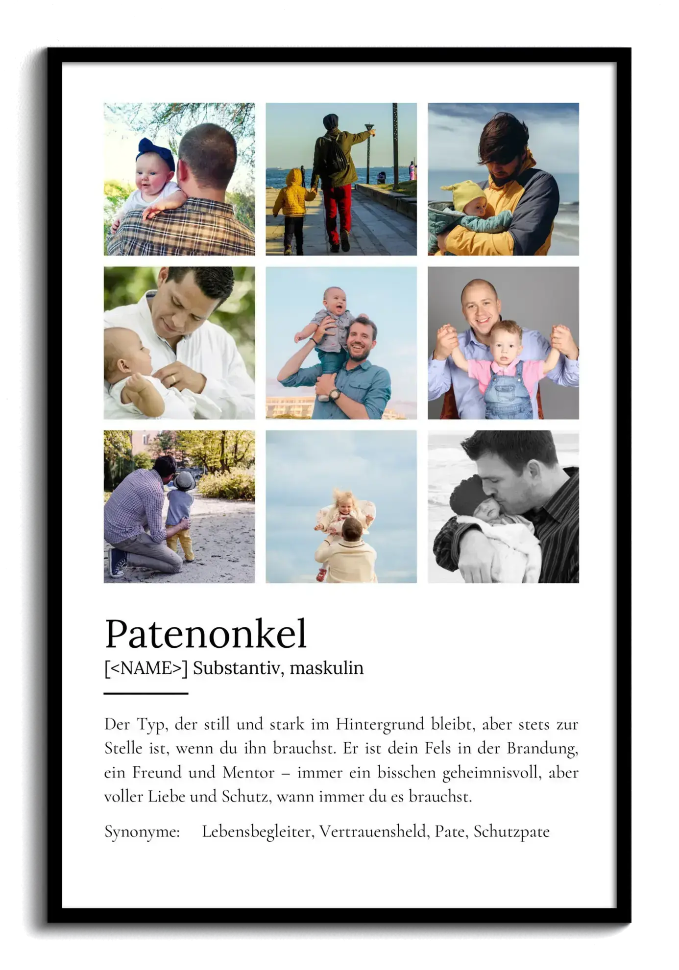 "Patenonkel" Definition - Geschenk als Poster, Leinwand erstellen. Eigene Fotos und Text.