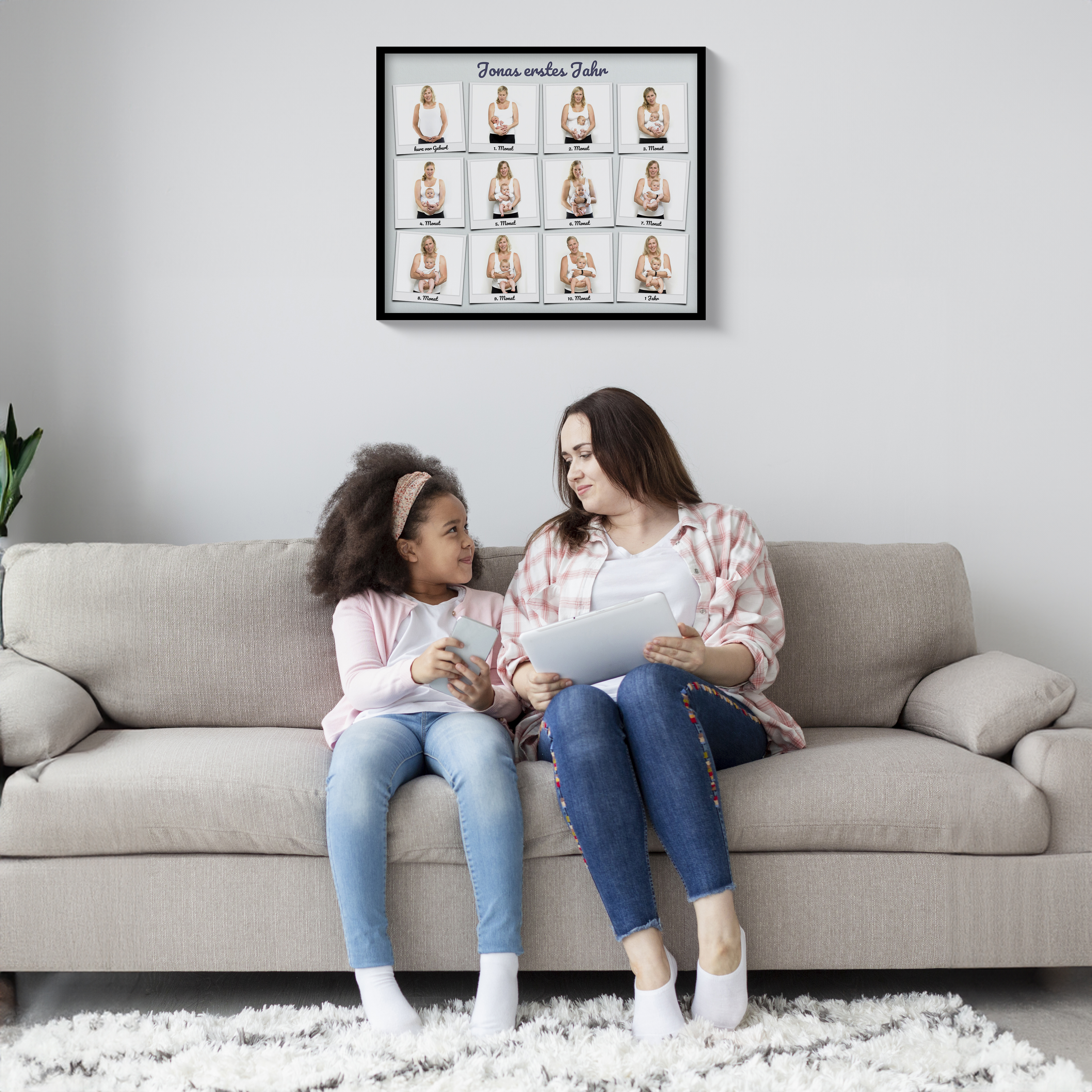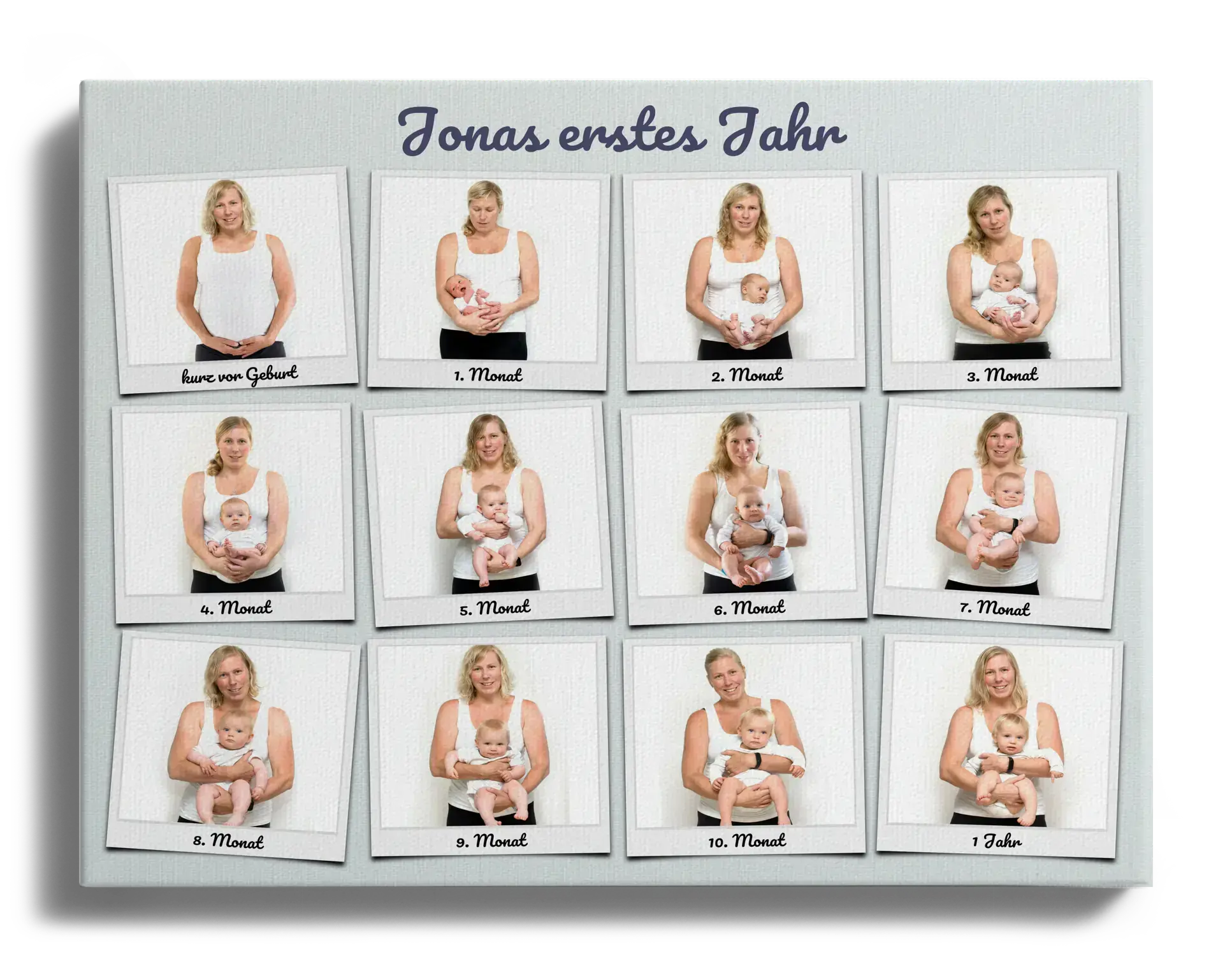 Das erste Lebensjahr liebevoll festgehalten in einer personalisierten Fotocollage: Premium-Poster in 50x60cm.
