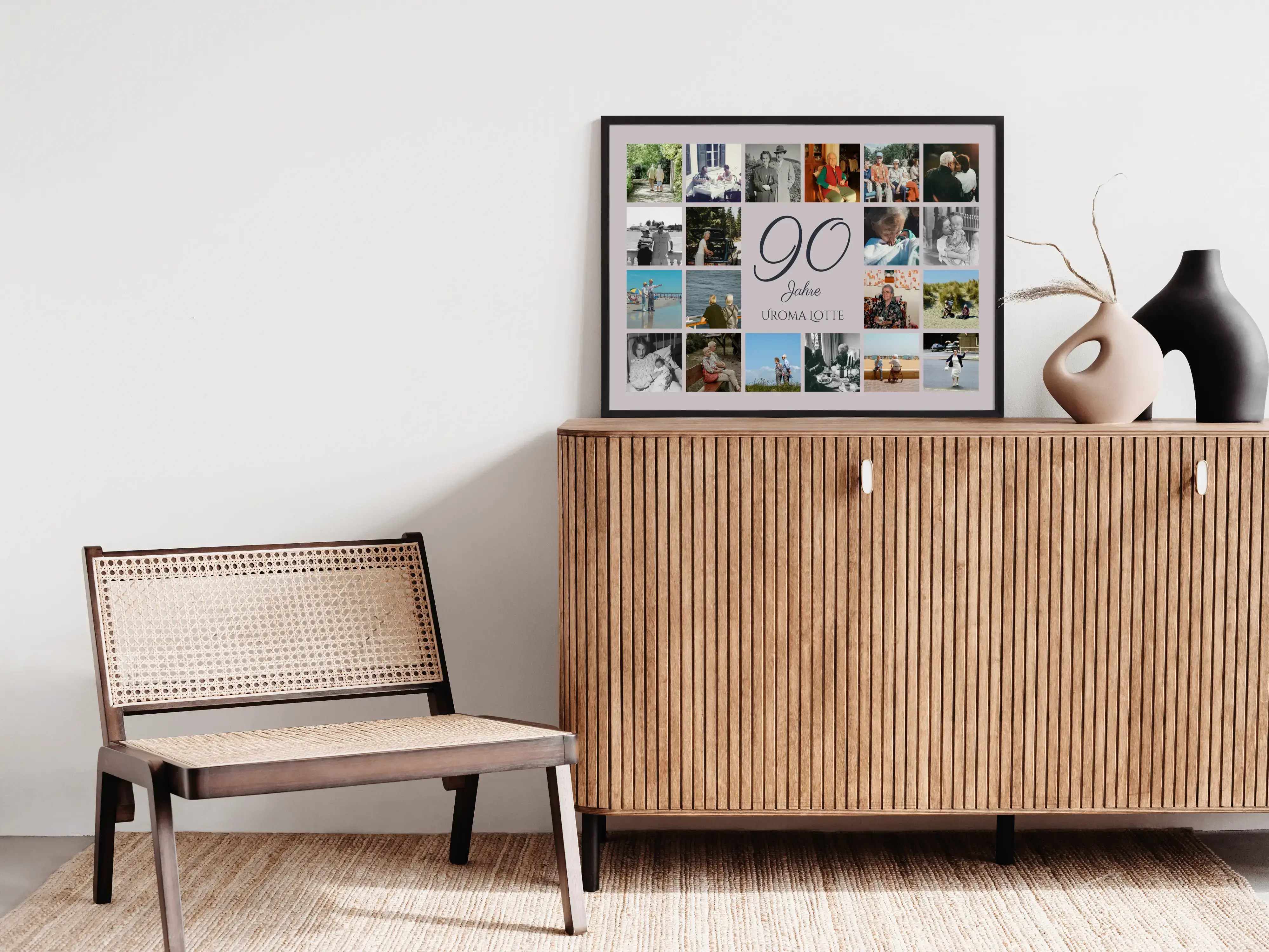 Als Geschenk für 90 Jahre passt die Zahlencollage ideal zum 90. Geburtstag von Oma, Opa oder Urgroßeltern, als gemeinsames Präsent von Kindern, Enkeln und Freunden. Auch für 90 Jahre Verein, Feuerwehr, Chor oder 90 Jahre Firmengeschichte ist sie eine persönliche Erinnerung und eine schöne Deko für die Feier.