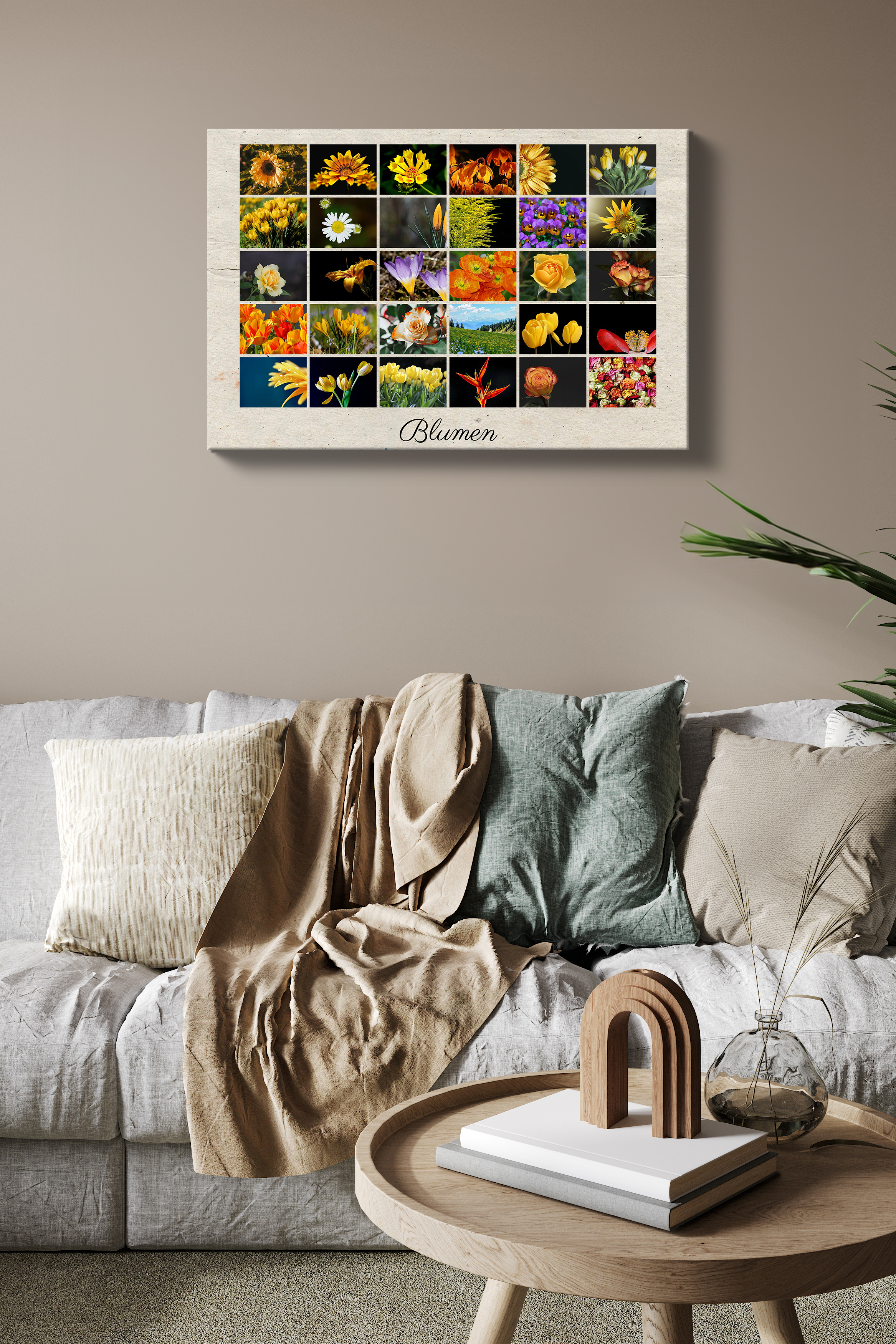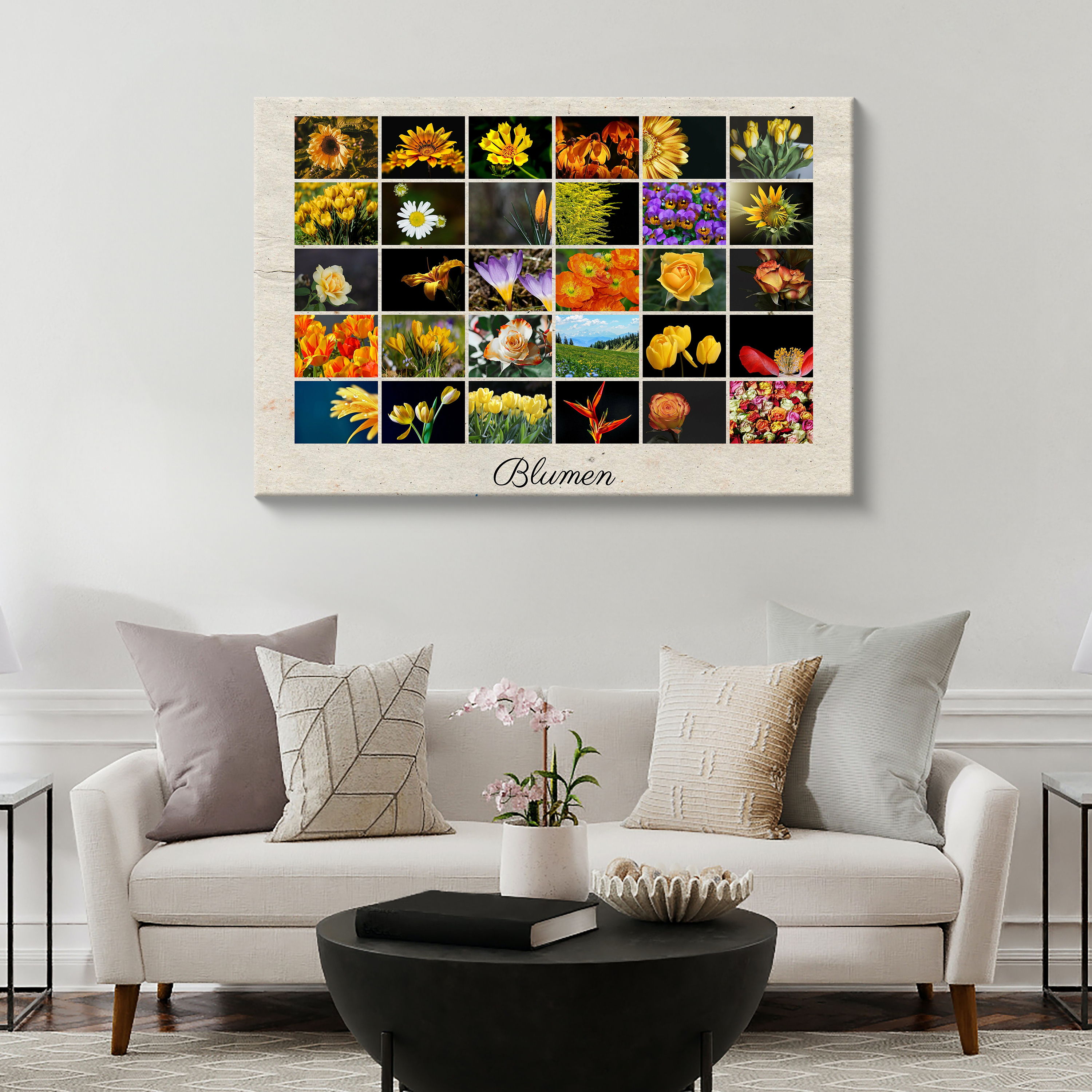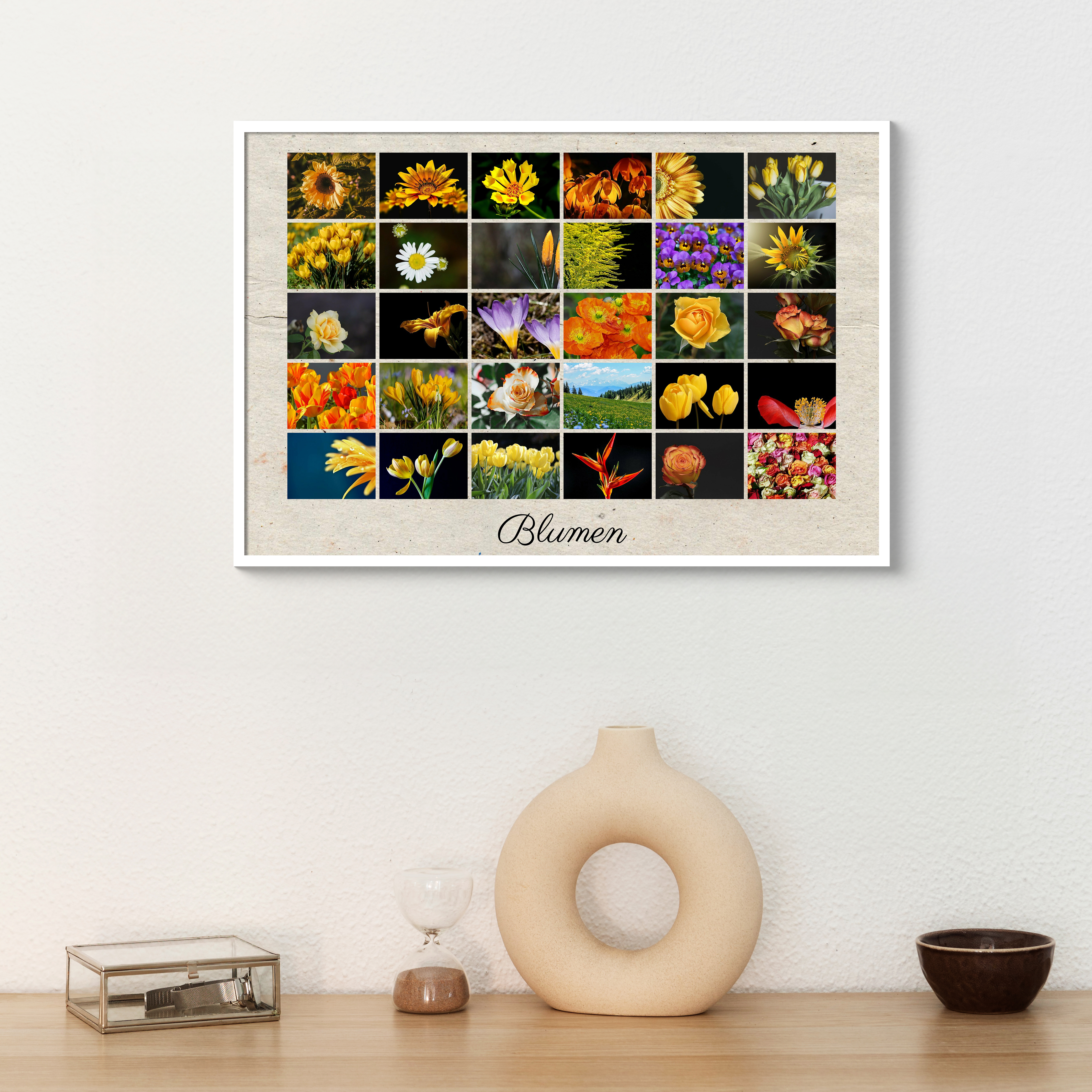 Postercollage im klassischen Raster mit Blumen und Text – personalisierbar, als Deko oder Geschenk
