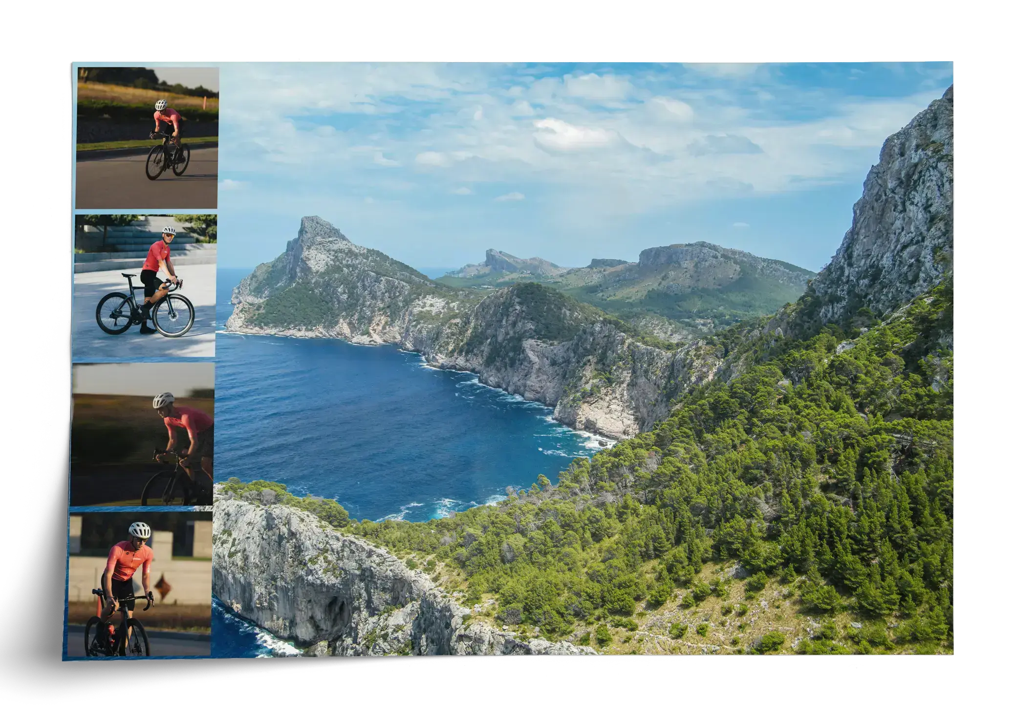 Rennrad-Fotocollage für Touren, Teamfahrten und Highlights mit individuellem Text wie Ort oder Datum