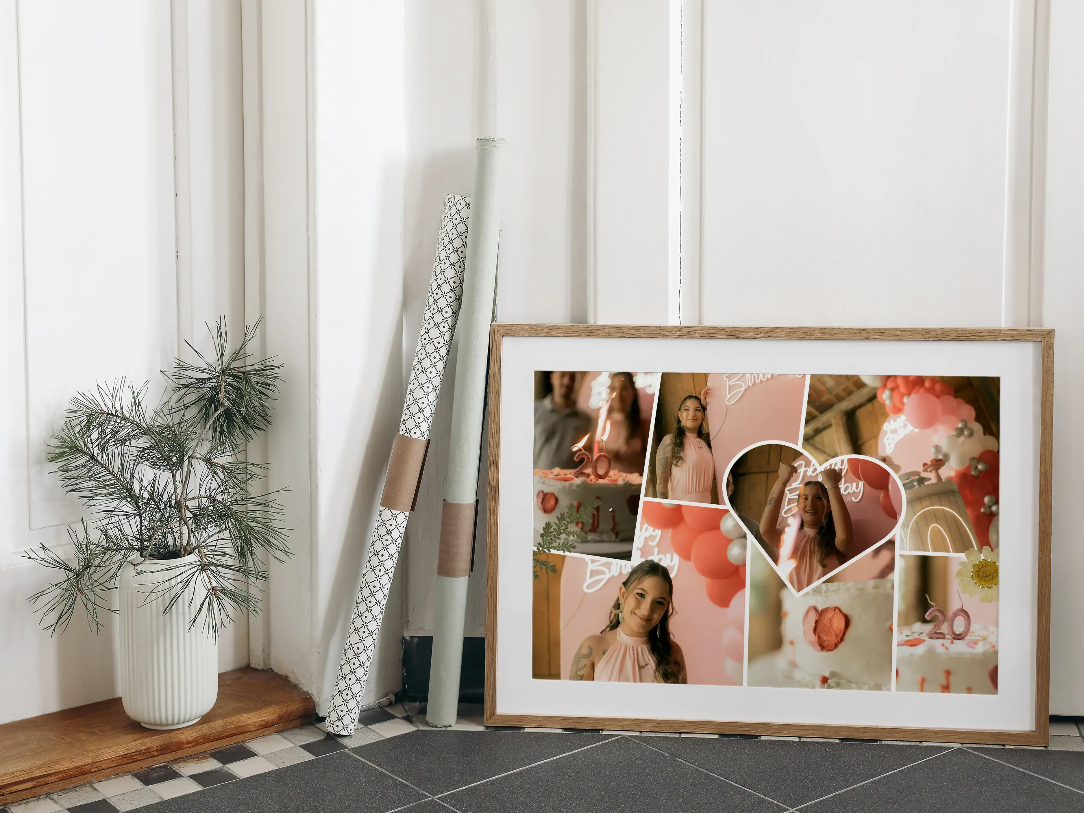 Bei der Gestaltung hast du viele Möglichkeiten, um die Collage an deinen Stil und deinen Anlass anzupassen. Du kannst Größe, Format und Anzahl der Bilder variieren, Fotos neu anordnen und den Gesamteindruck individuell abstimmen. Der cleane Scrapbook-Stil eignet sich besonders, wenn mehrere Bilder leicht und modern präsentiert werden sollen, ohne überladen zu wirken.