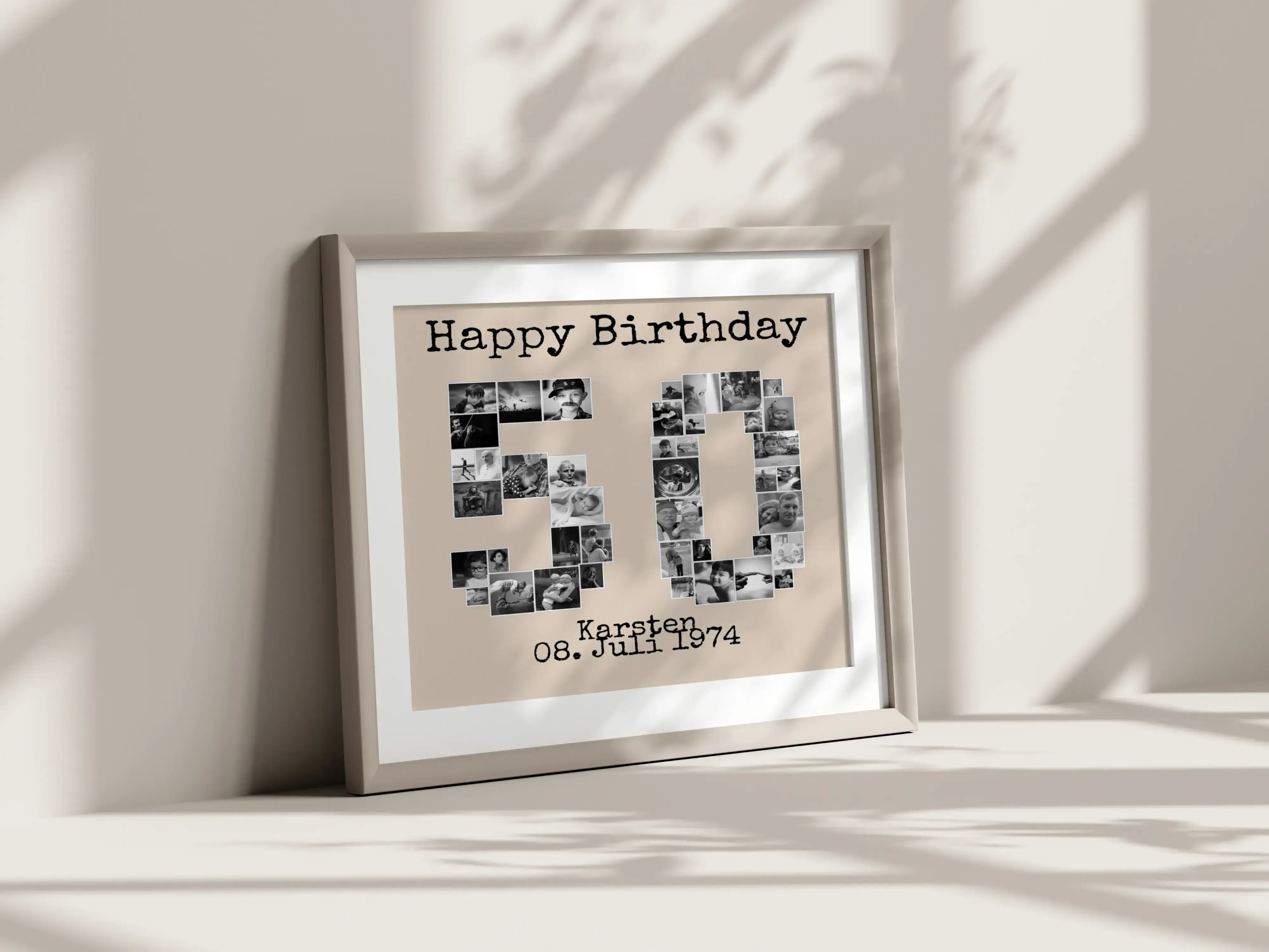 Gestalte deine ganz persönliche Fotocollage in Form deiner Wunschzahl und verleihe besonderen Momenten eine individuelle Note. Diese Zahlencollage eignet sich perfekt für Geburtstage, Jubiläen oder bedeutende Meilensteine und ist in diversen Größen und Formaten erhältlich, darunter als Poster, gerahmtes Bild, Leinwand, Acryl oder Alu-Dibond. Jedes Detail lässt sich anpassen, von der Zahl selbst über die Fotos bis hin zu Text und Hintergrund.