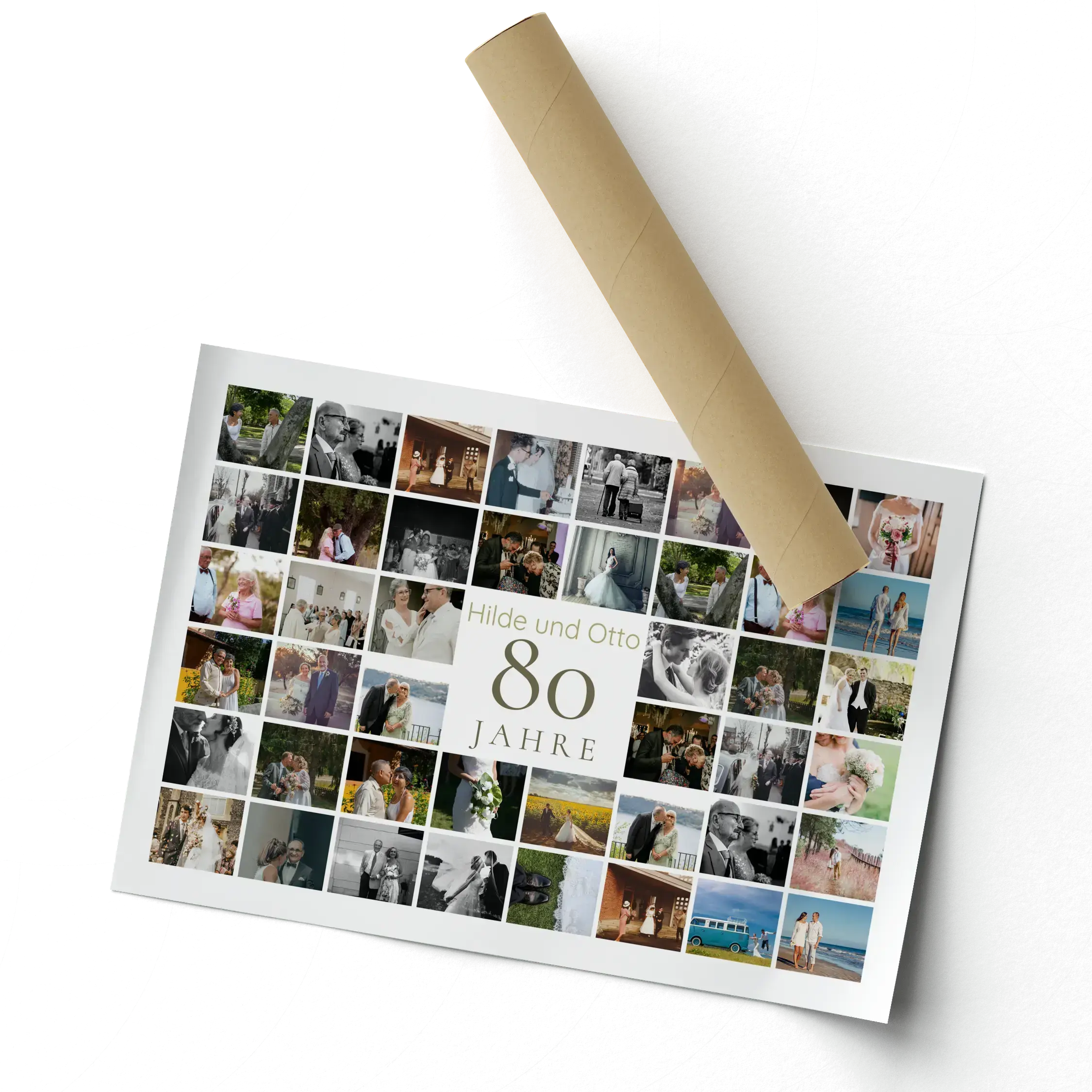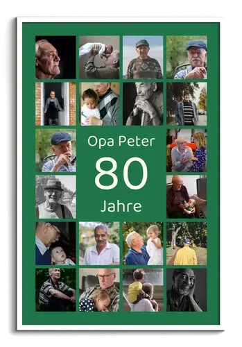 Besonders passend für den 80. Geburtstag von Oma, Opa, Eltern oder Freundinnen und Freunde, für 80 Jahre Firmengeschichte, Vereins- oder Ortsjubiläum sowie die seltene Eichenhochzeit. Als Erinnerung an Lebensstationen, Reisen, Familie und gemeinsame Erlebnisse – personalisiert mit Namen, Datum und Grußworten.