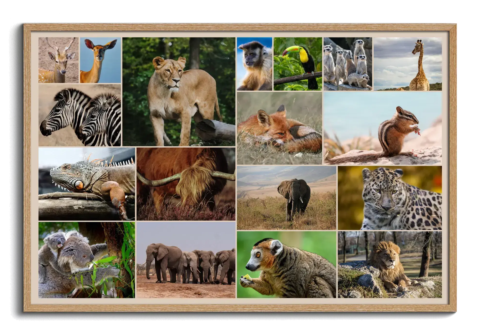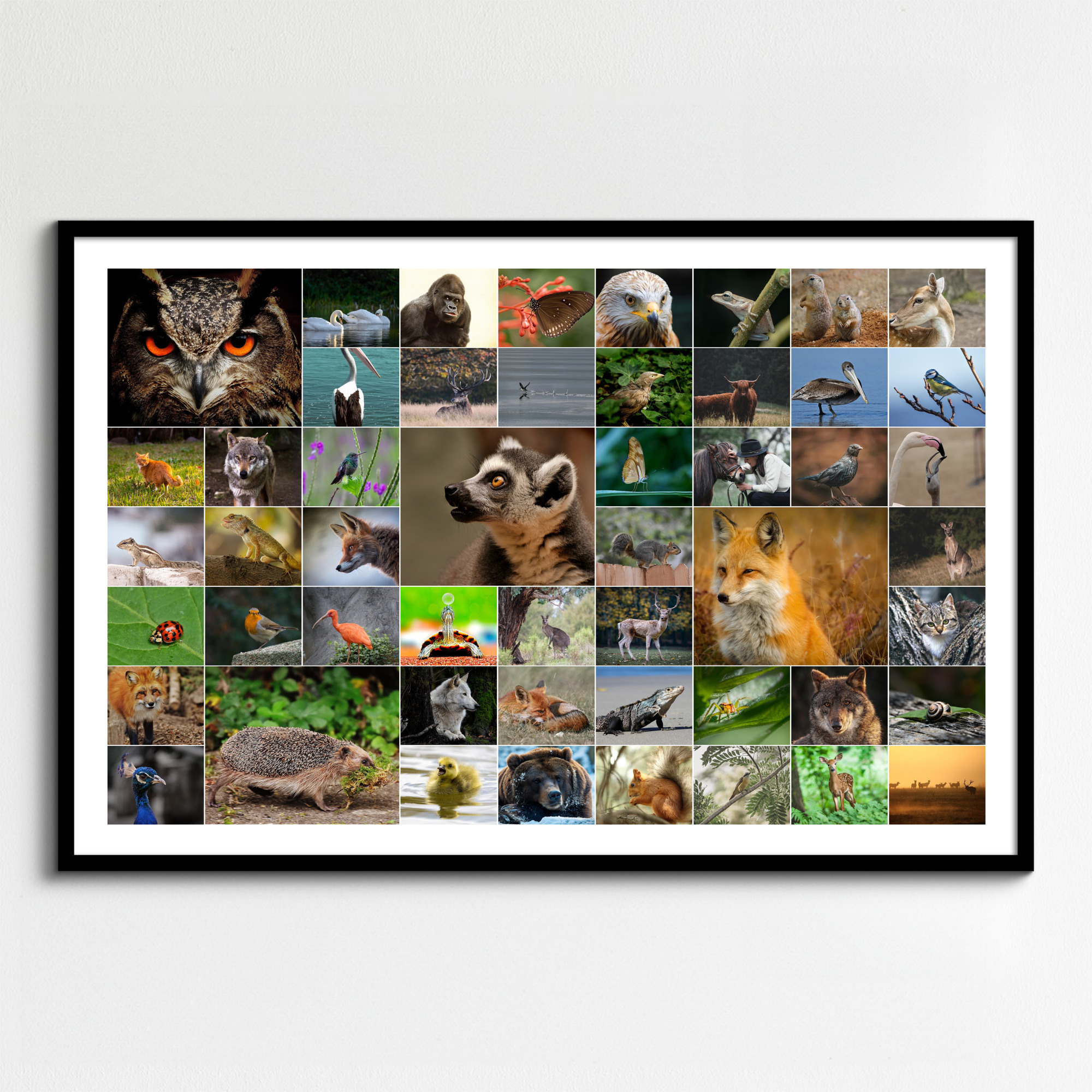 Créez un collage photo d'animaux sauvages & oiseaux - Poster, toile ou cadre premium