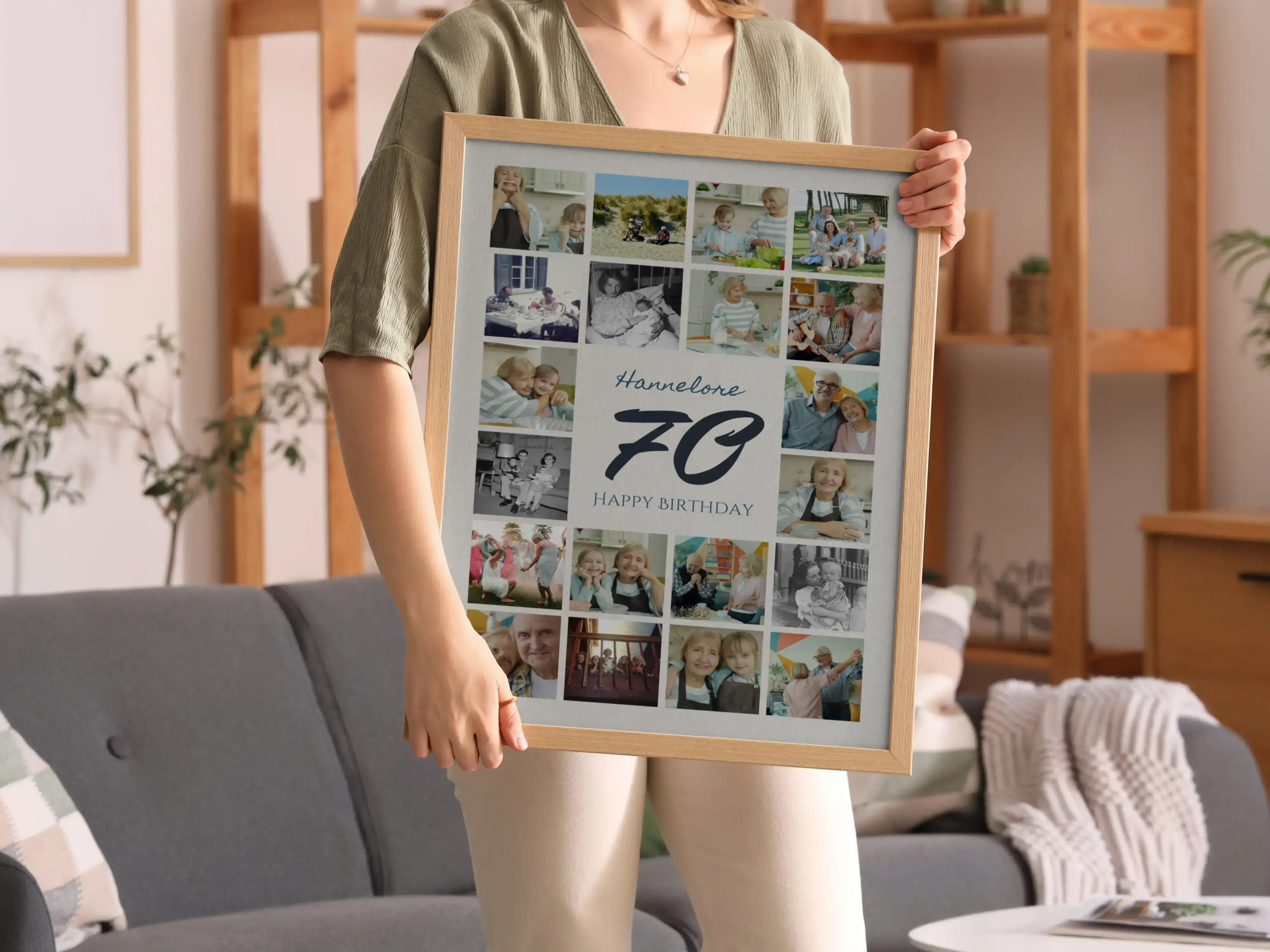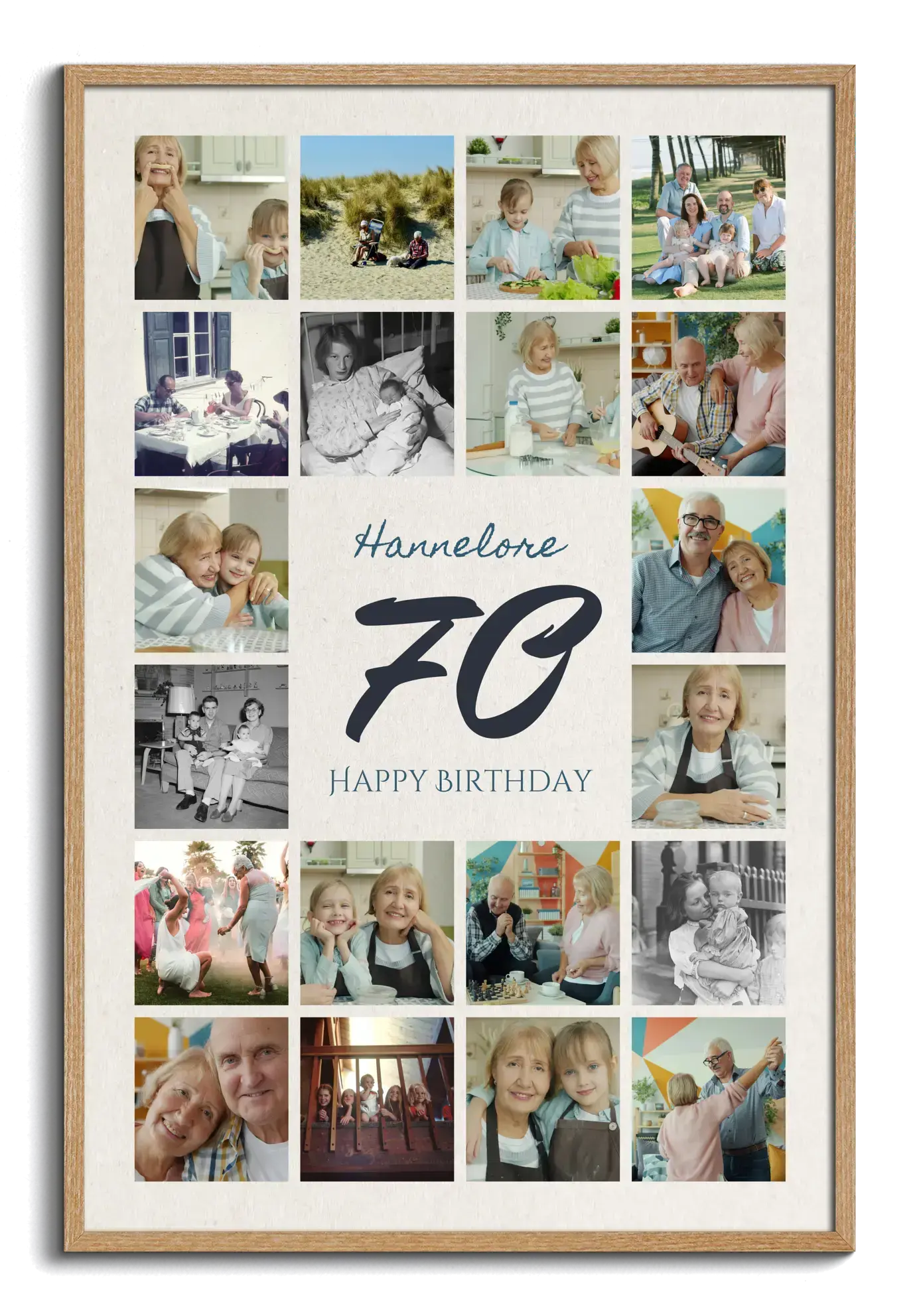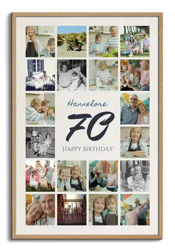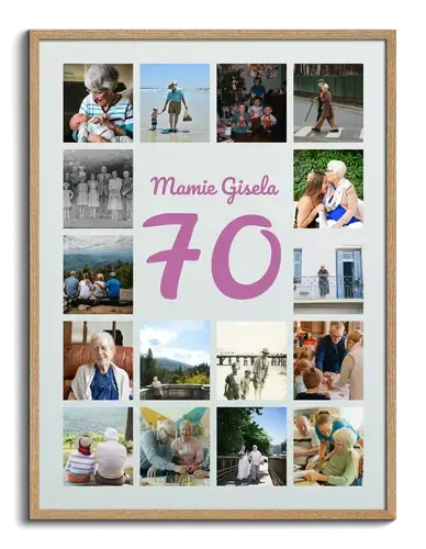 Collage chiffre 70 avec 20–80 photos, personnalisable, pour anniversaire, jubilé, noces de platine