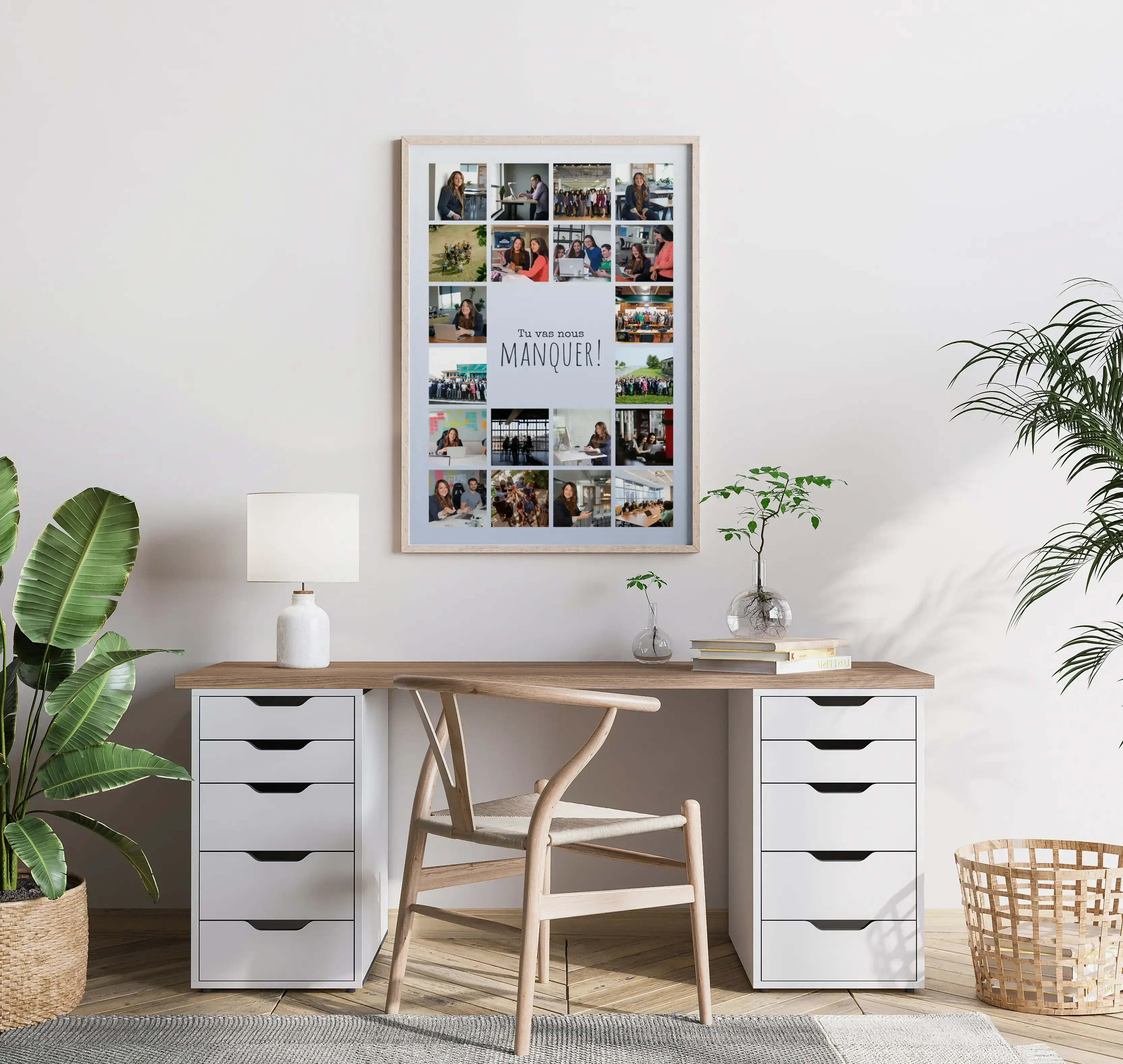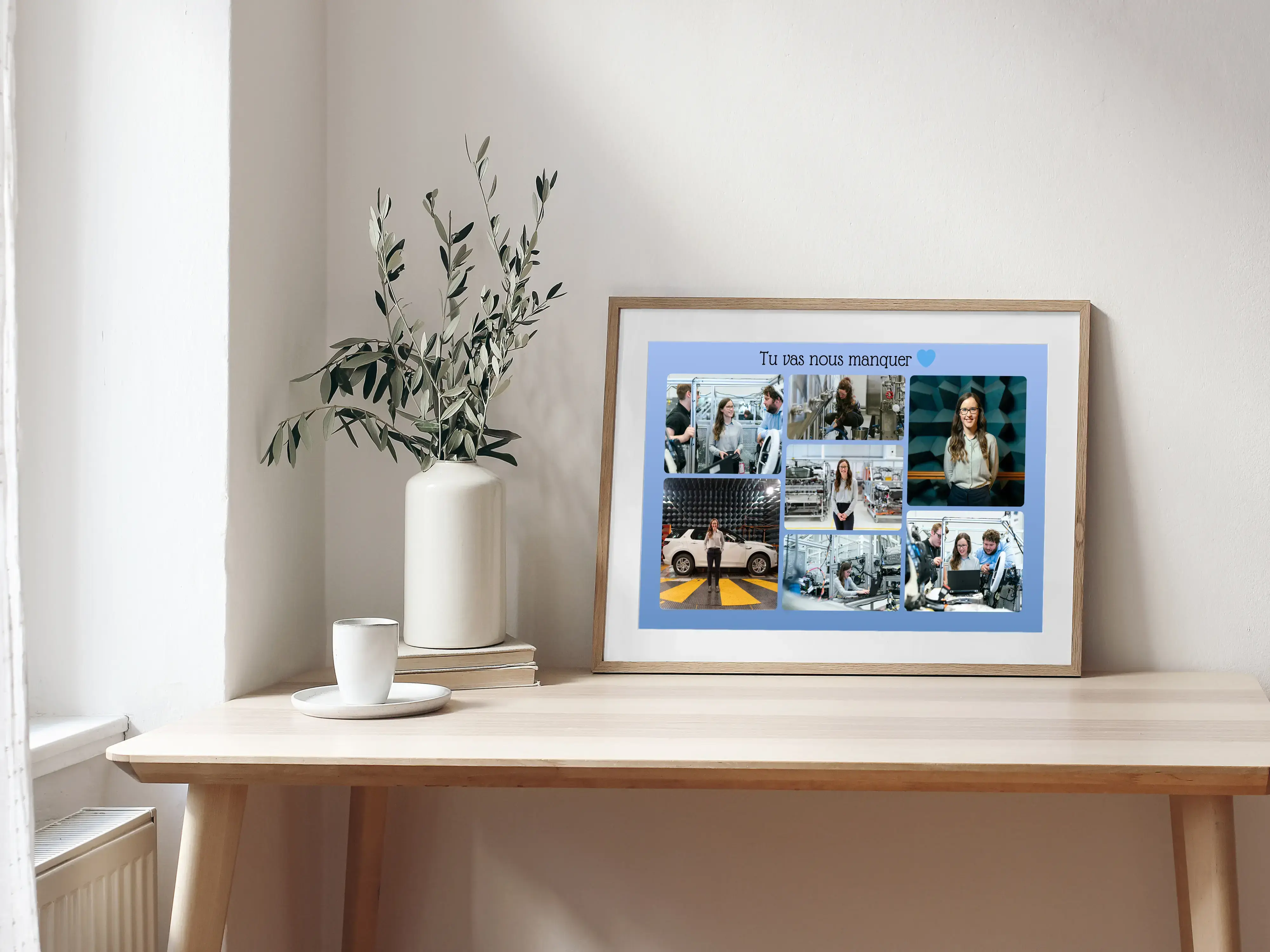 Collage d’adieu avec photos et message central, souvenir chaleureux offert par l’équipe