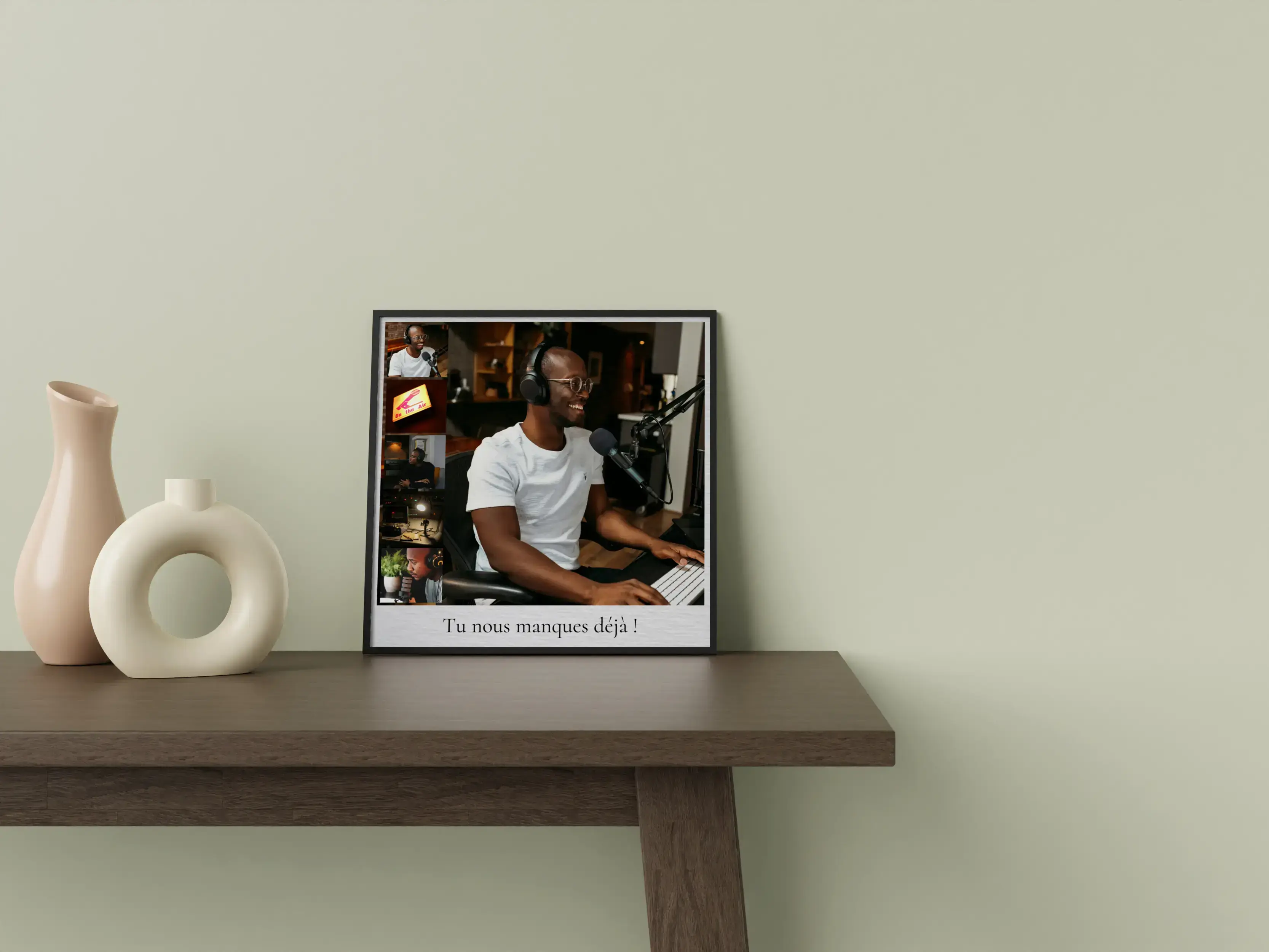Côté design, tout peut être adapté : format et taille, nombre d’images, disposition et marges, couleurs de fond, texte principal et texte de signature, polices et alignements. Les photos peuvent être recadrées individuellement, repositionnées, et l’ensemble peut rester sobre et professionnel ou devenir plus créatif selon l’ambiance du départ.