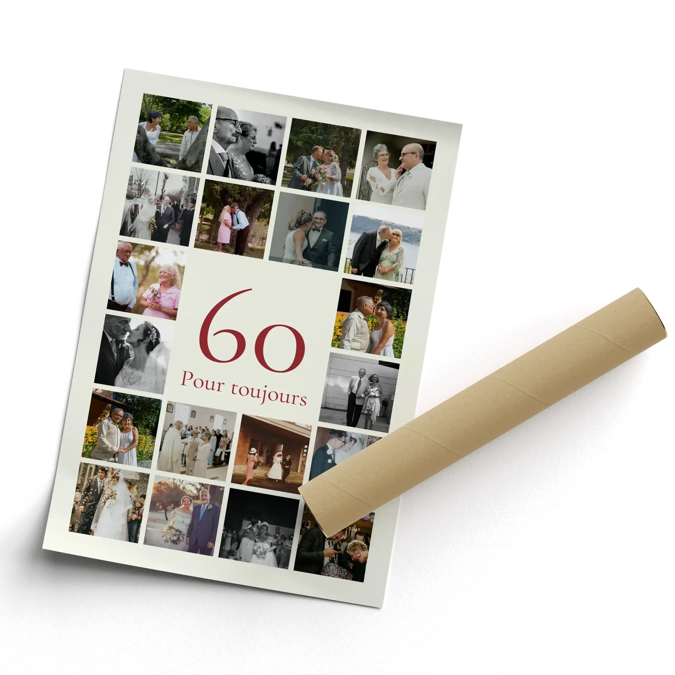 Collage 60 personnalisable: nombre, nom, message, photos. Idéal 60 ans, retraite, noces de diamant