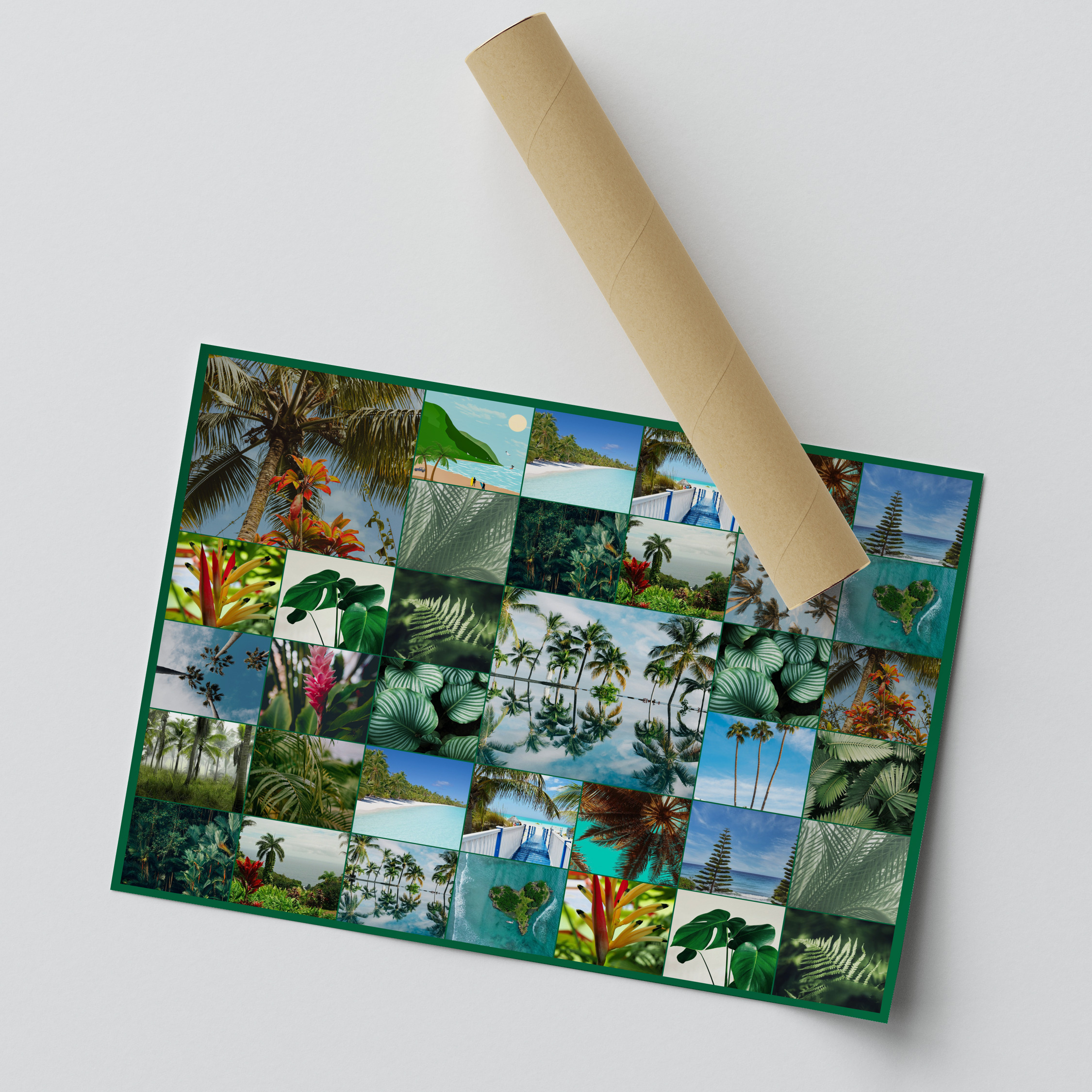 Collage photo Nature tropicale - créez votre impression premium: palmiers, plage, jungle