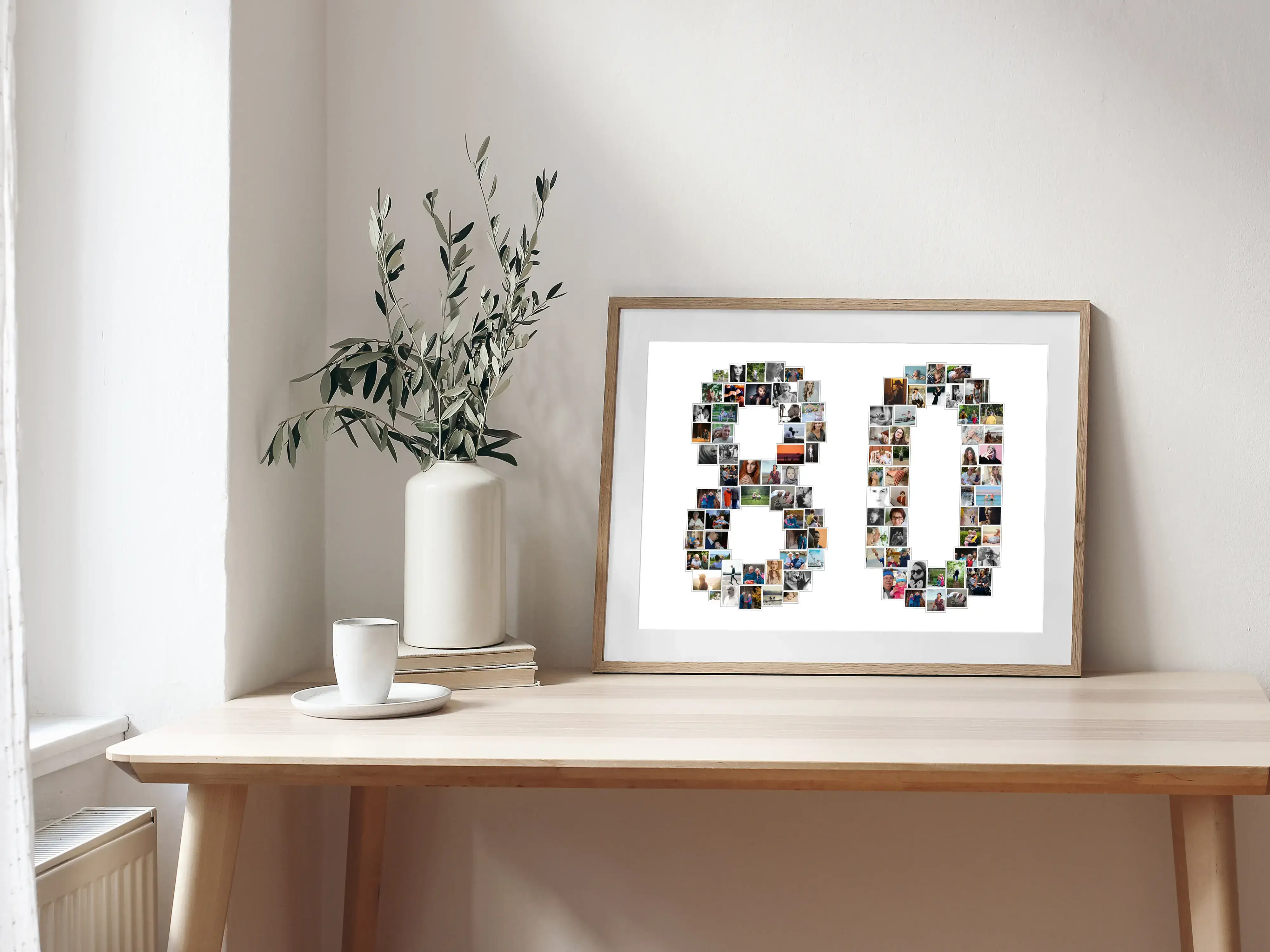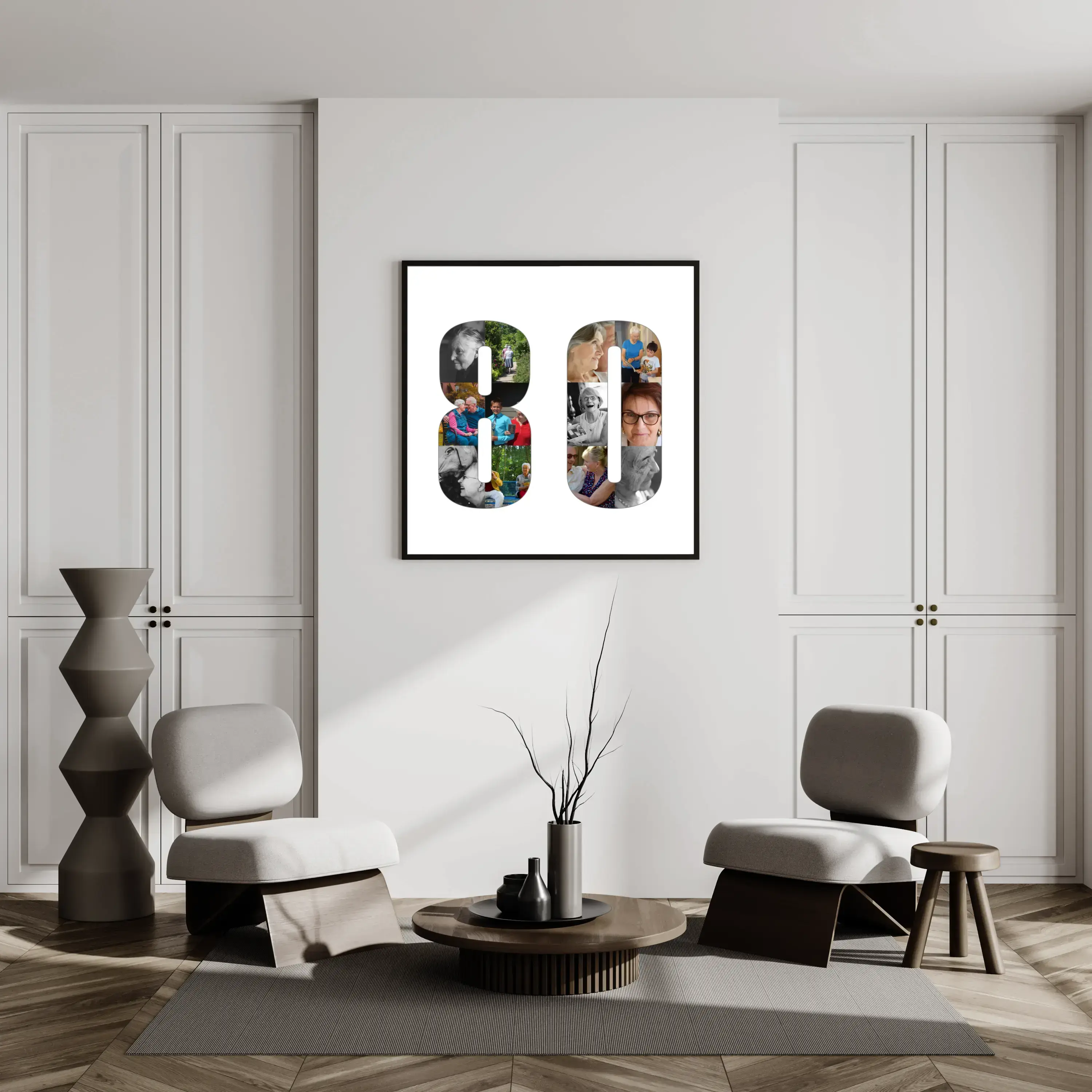 Célébrez 80 ans de souvenirs avec une mosaïque photo unique et personnalisée.