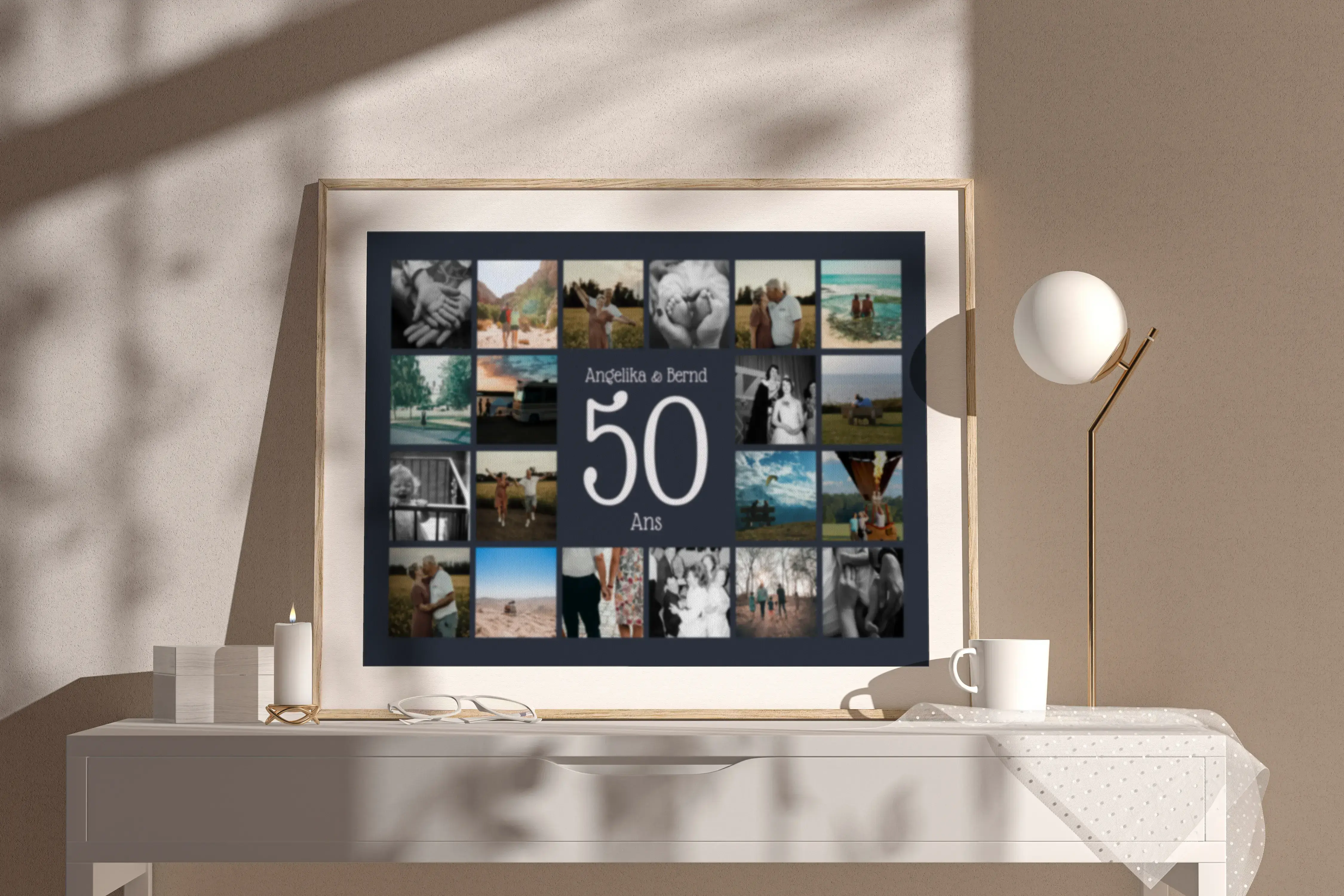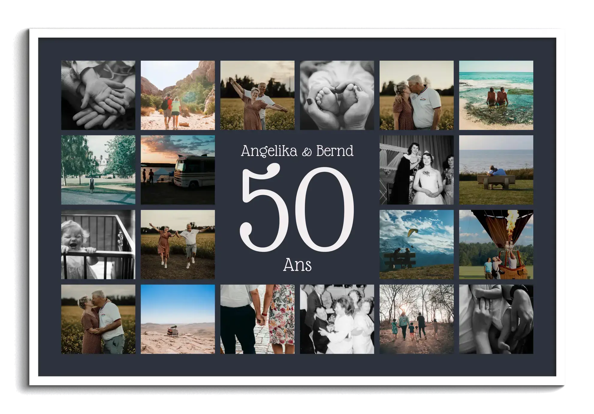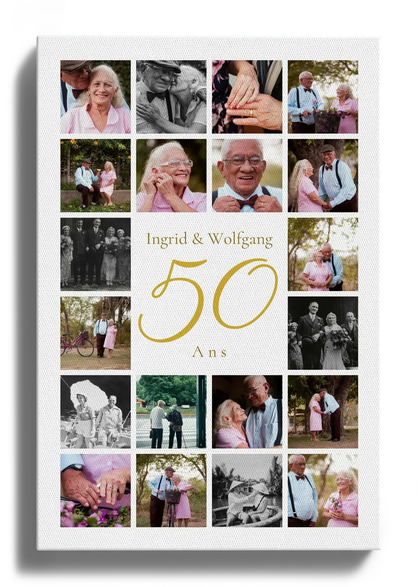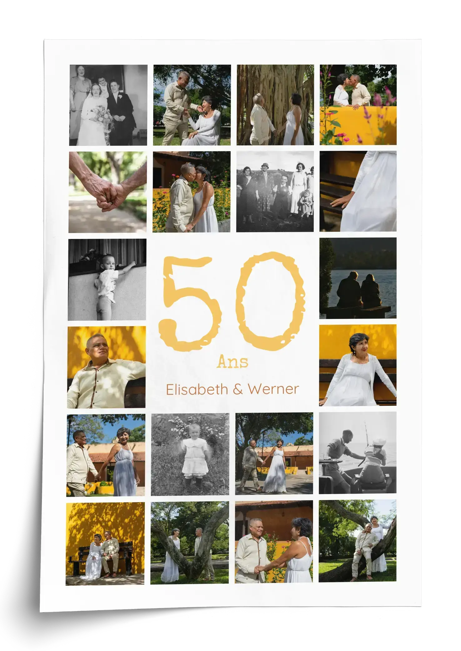 Collage de noces d’or avec grand chiffre central, noms et texte, 20–80 photos, personnalisable
