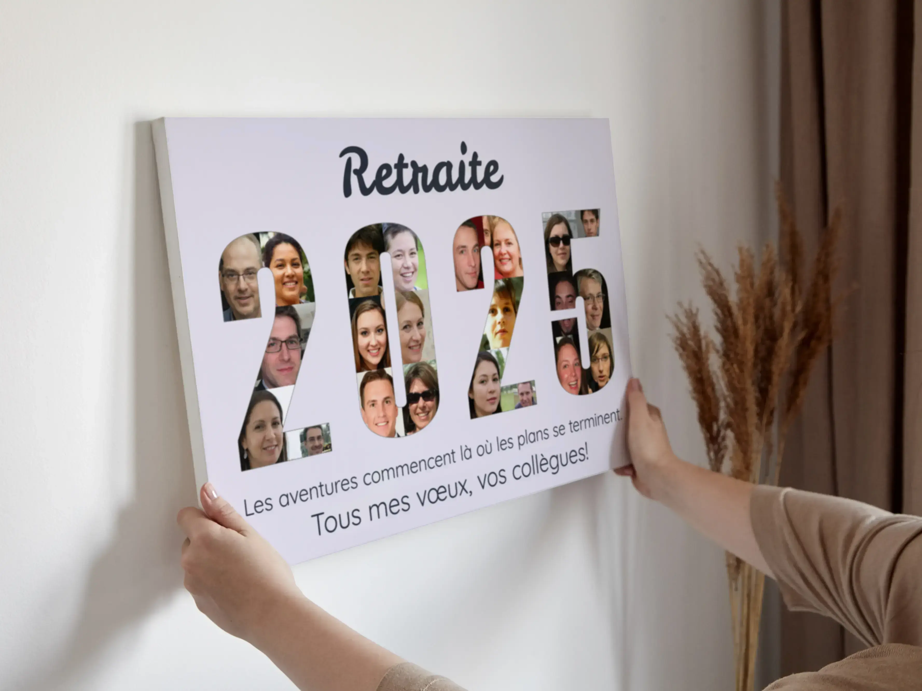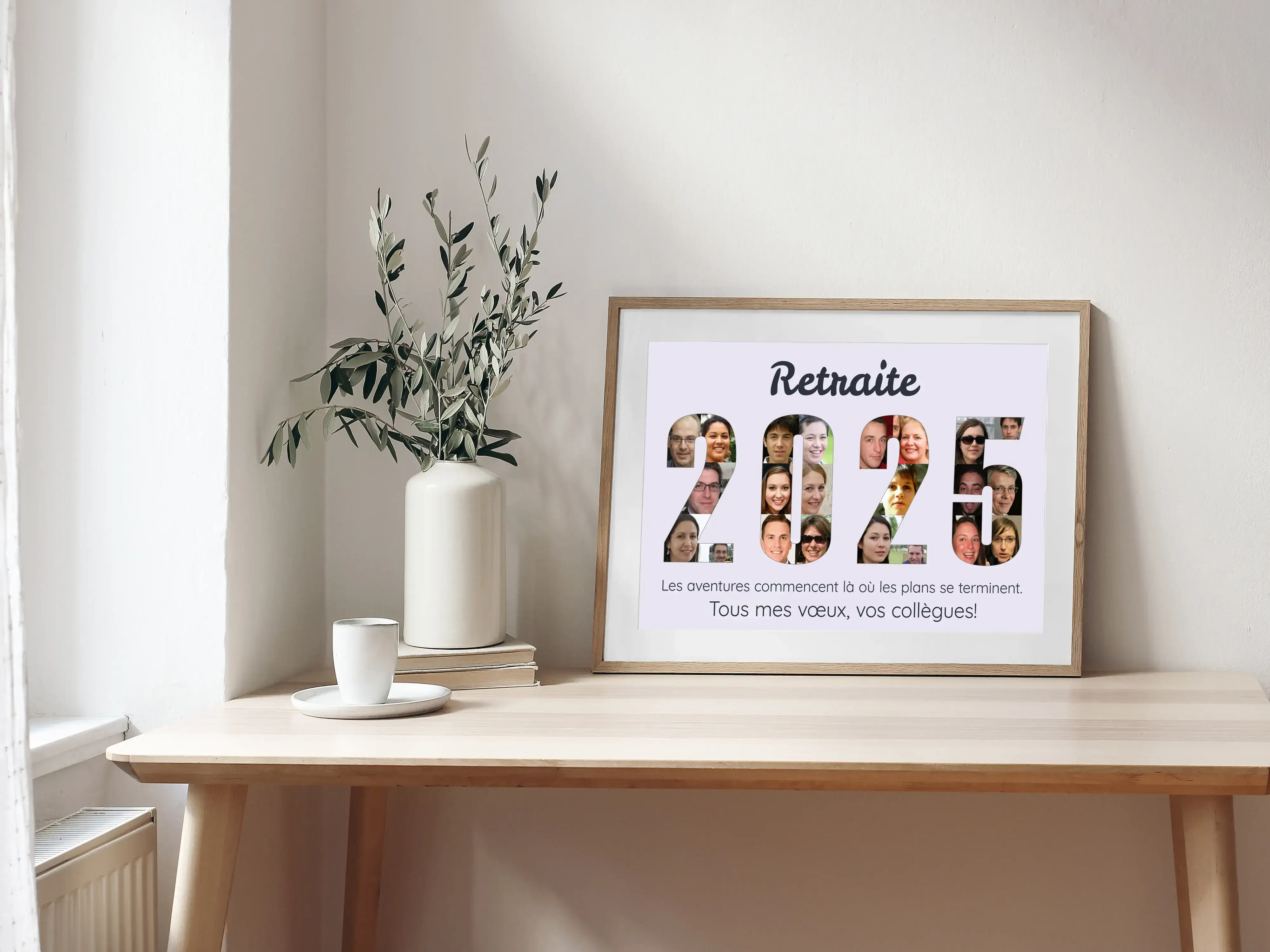 Célébrez une carrière avec une collage personnalisée, un hommage unique pour le départ à la retraite.