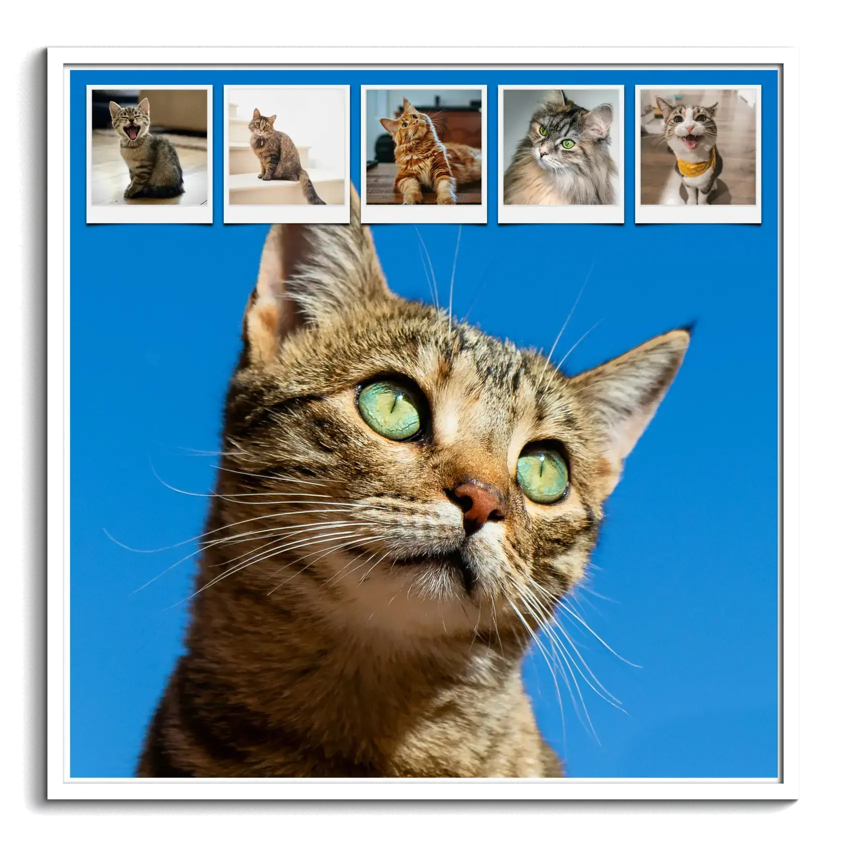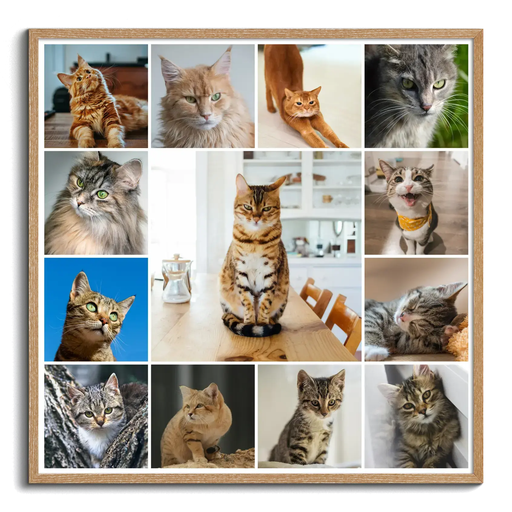 Crée maintenant. Transforme les plus belles photos de ton chat en une création unique: assemble clichés de siestes, jeux et moustaches dans des modèles cœur, grille, texte ou chiffres, ajoute des légendes personnalisées comme Un cœur à quatre pattes, choisis les couleurs et compose un souvenir tendre et stylé.