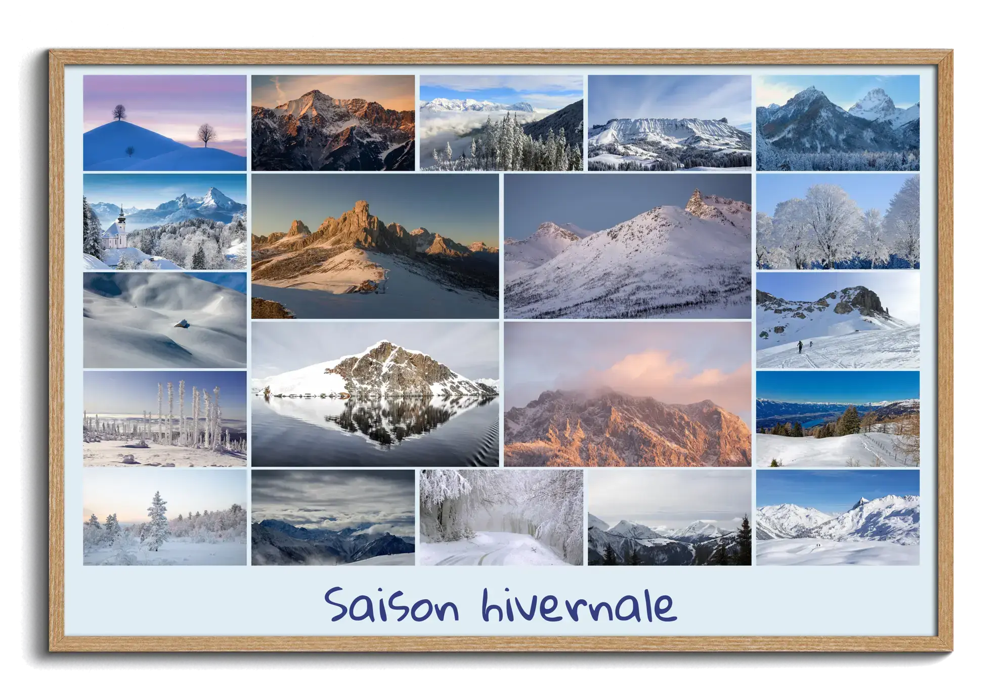 La beauté des paysages en quatre saisons, sublimée en collages imprimés premium.