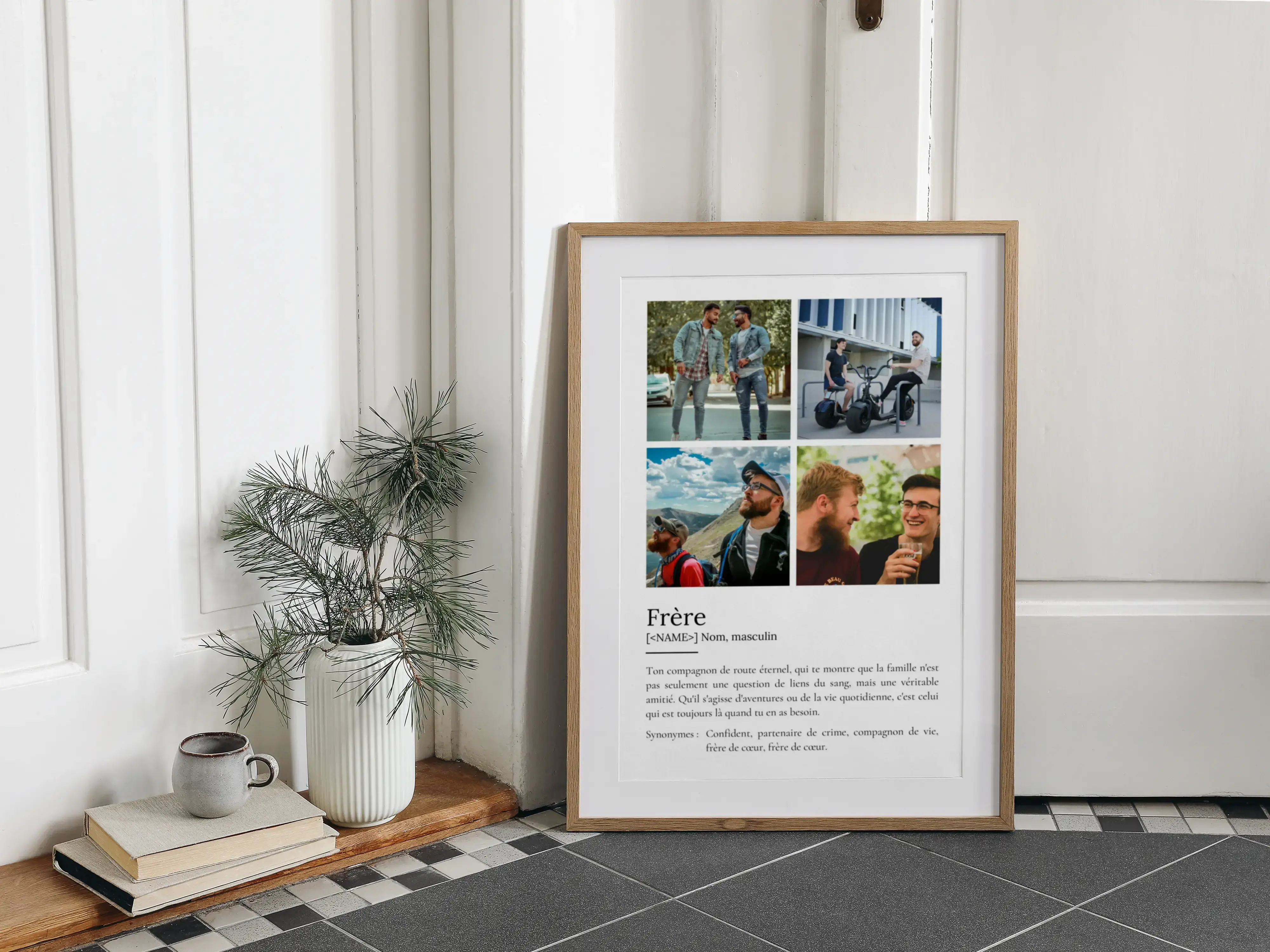 Offrez ce poster de définition "Frère" pour d'innombrables occasions : anniversaires, événements familiaux, remises de diplômes, ou simplement pour partager des moments d’émotion avec vos proches. C’est un cadeau qui captive par son authenticité et touche par sa personnalisation.