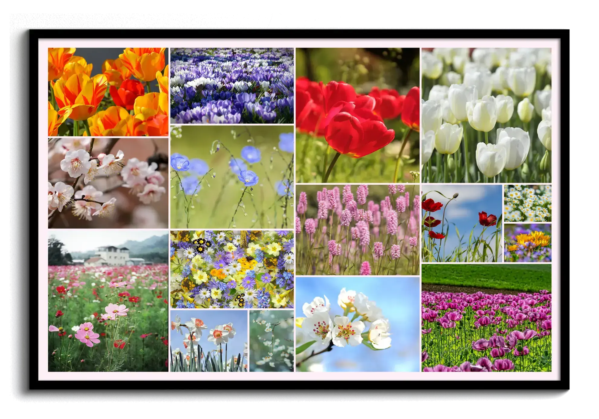 Parfait pour la photo de nature, de paysages et d’animaux, cet exemple met à l’honneur le thème Plantes et Fleurs: prairies en fleurs, gros plans de roses, lavande, tournesols, tulipes, ambiance de printemps. Choisissez la composition idéale parmi nos modèles et profitez d’un tirage premium aux couleurs éclatantes.