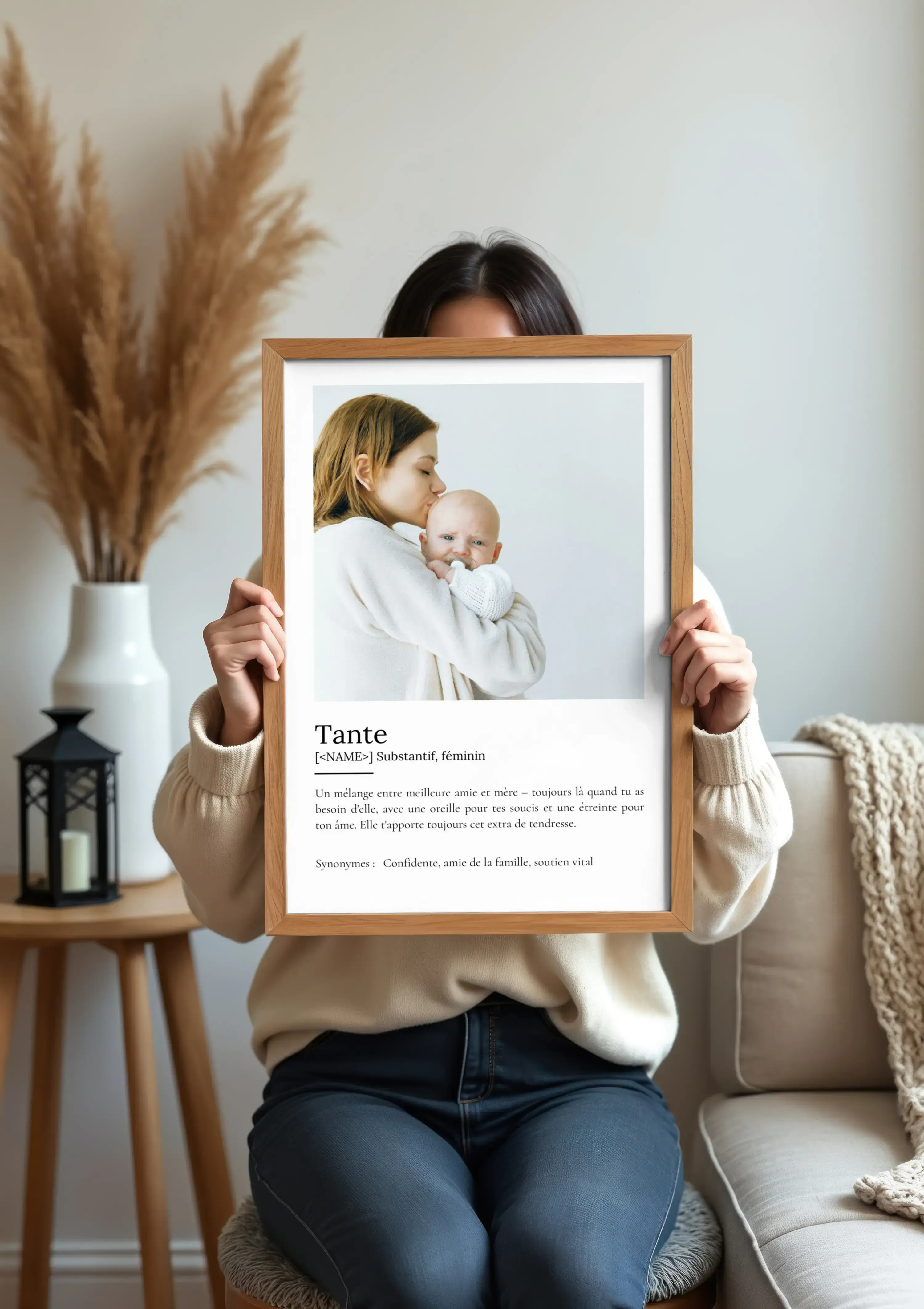 Célébrez la tendresse d'une tante avec un poster défini, photo et amour personnalisés.