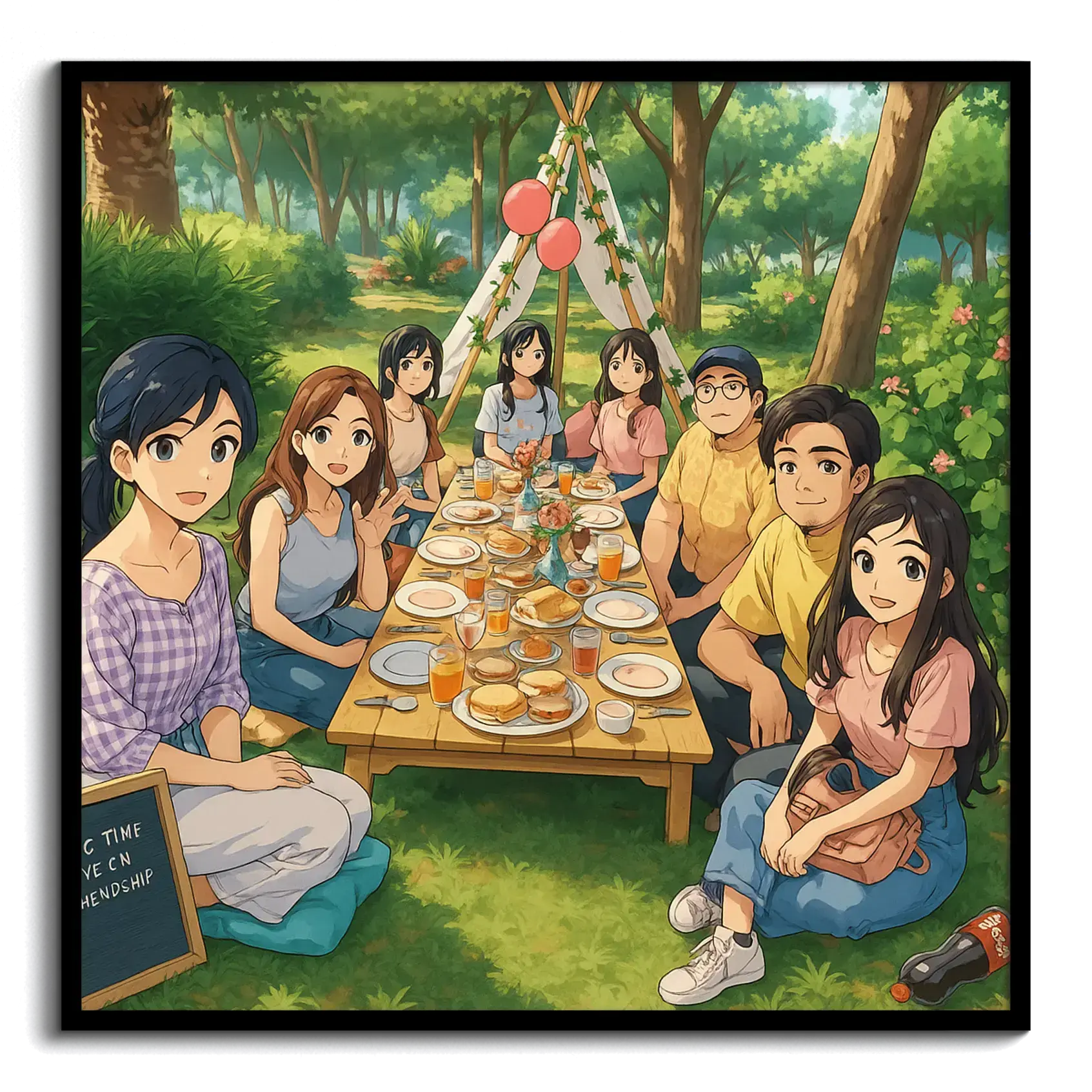 Commandez maintenant et transformez votre image en art prêt à accrocher. Exemple présenté: Foto in Anime-Stil umwandeln – une photo convertie par IA en style anime, aux lignes nettes et couleurs douces, imprimable en poster, cadre, toile, acrylique, Alu‑Dibond, panneau mousse ou disponible en fichier HD.