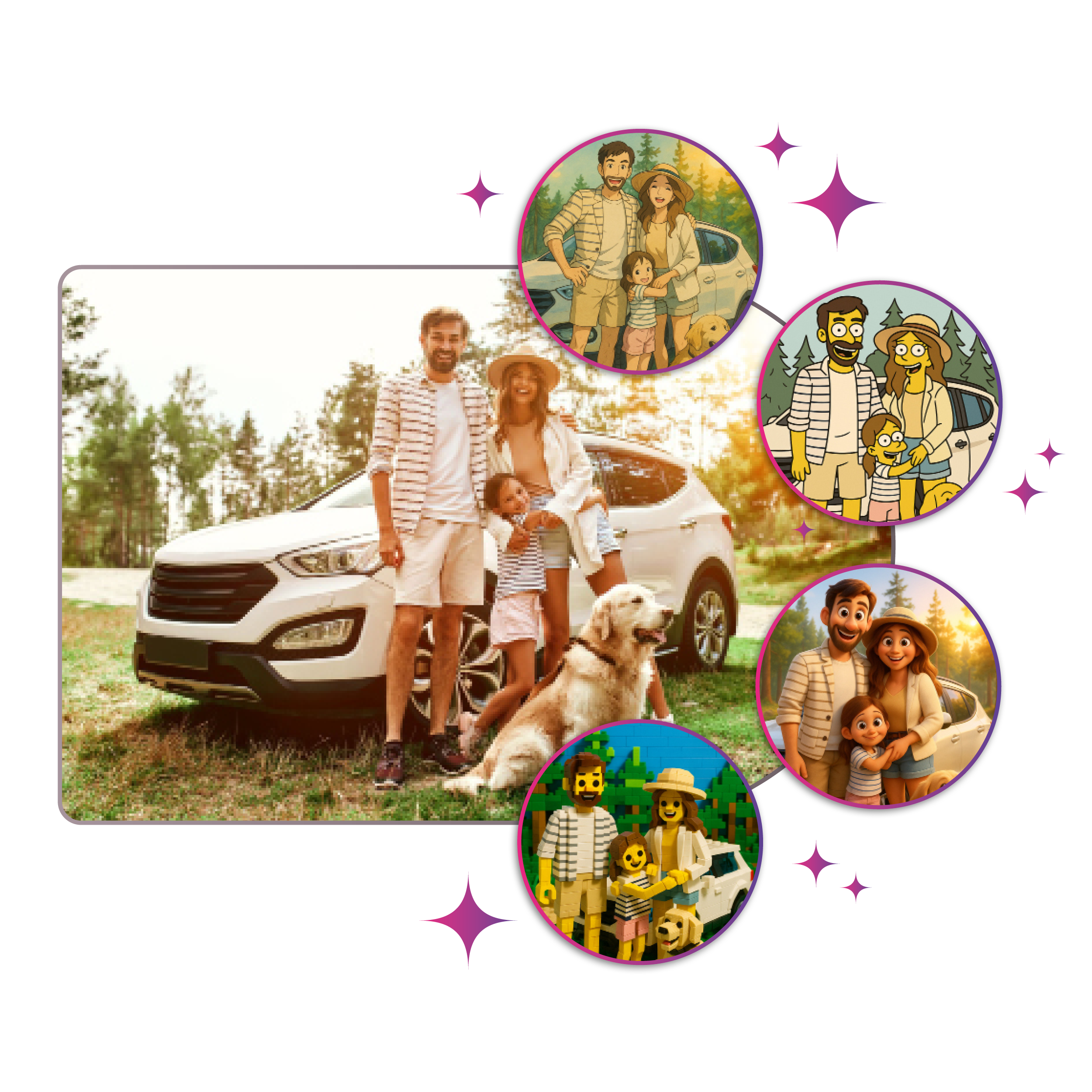 Choisissez parmi différents styles d'IA – de l'anime à l'aquarelle. Les exemples montrent comment votre image pourrait apparaître dans chaque style.